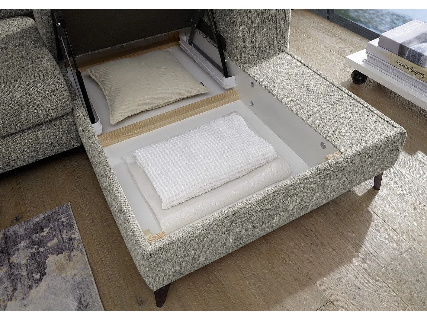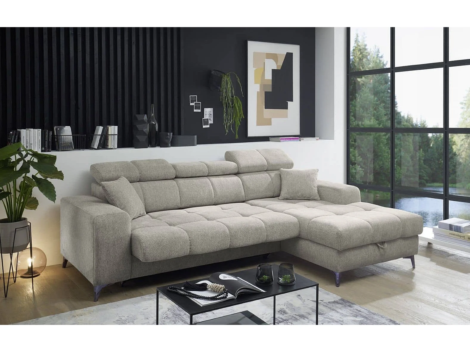 MYHOMELANDO hoekbank Sydney – L-vorm met elektrische zitverstelling en opbergruimte