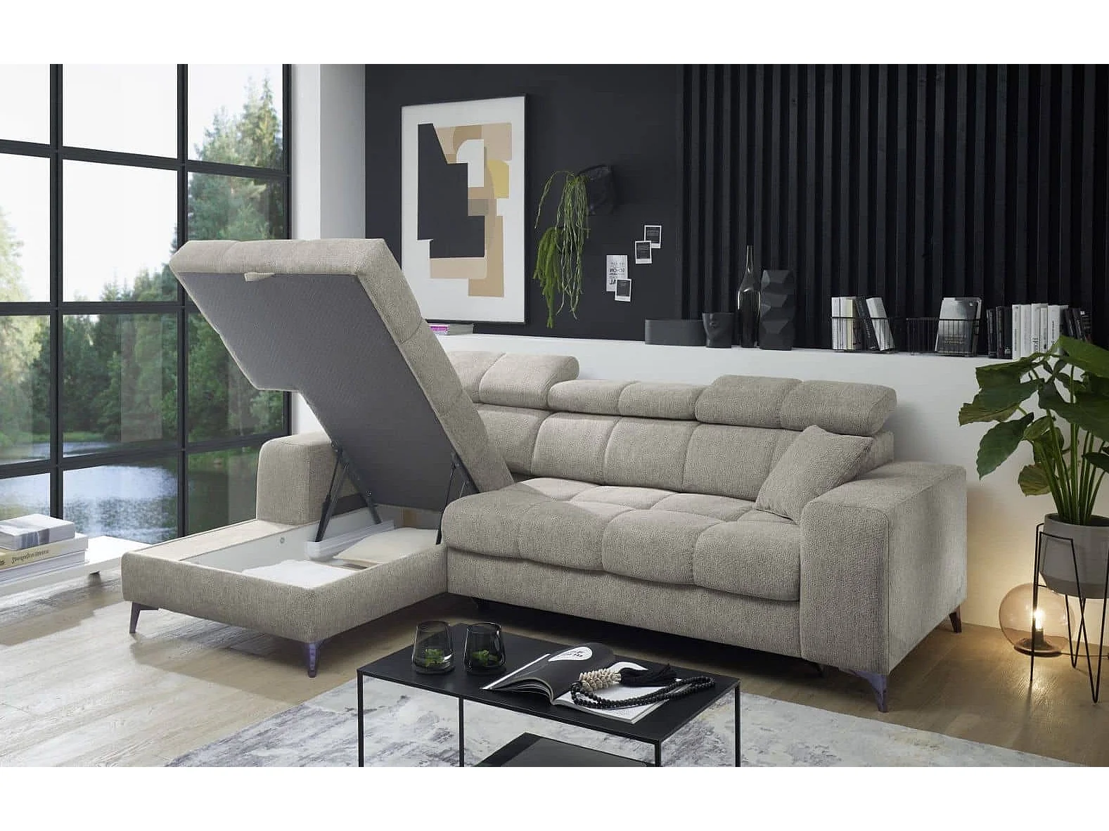 MYHOMELANDO hoekbank Sydney – L-vorm met elektrische zitverstelling en opbergruimte