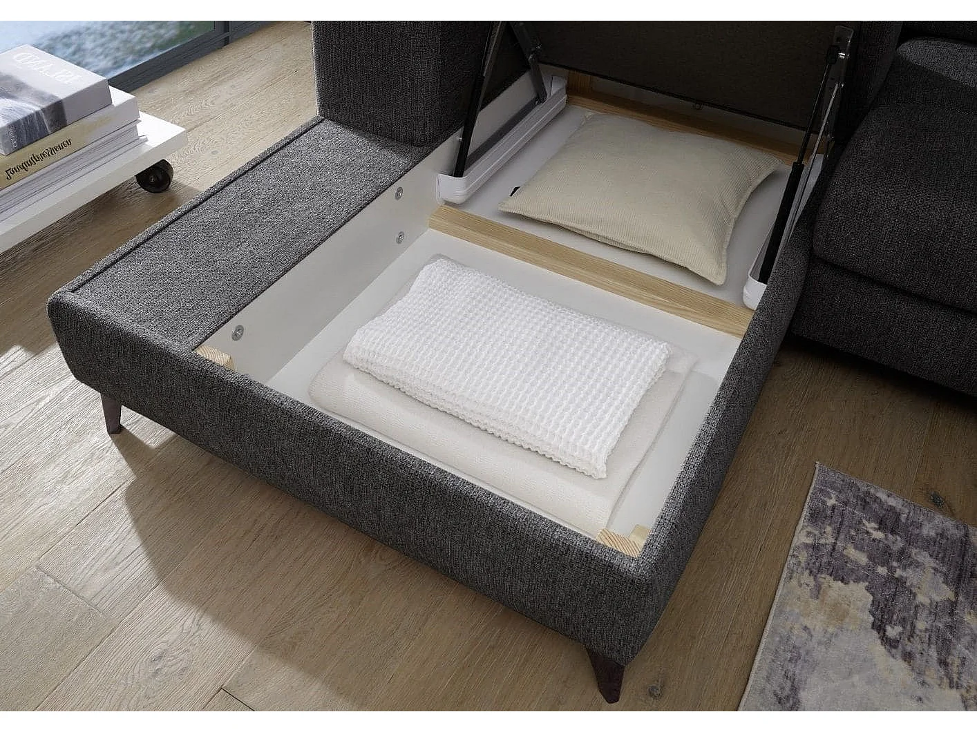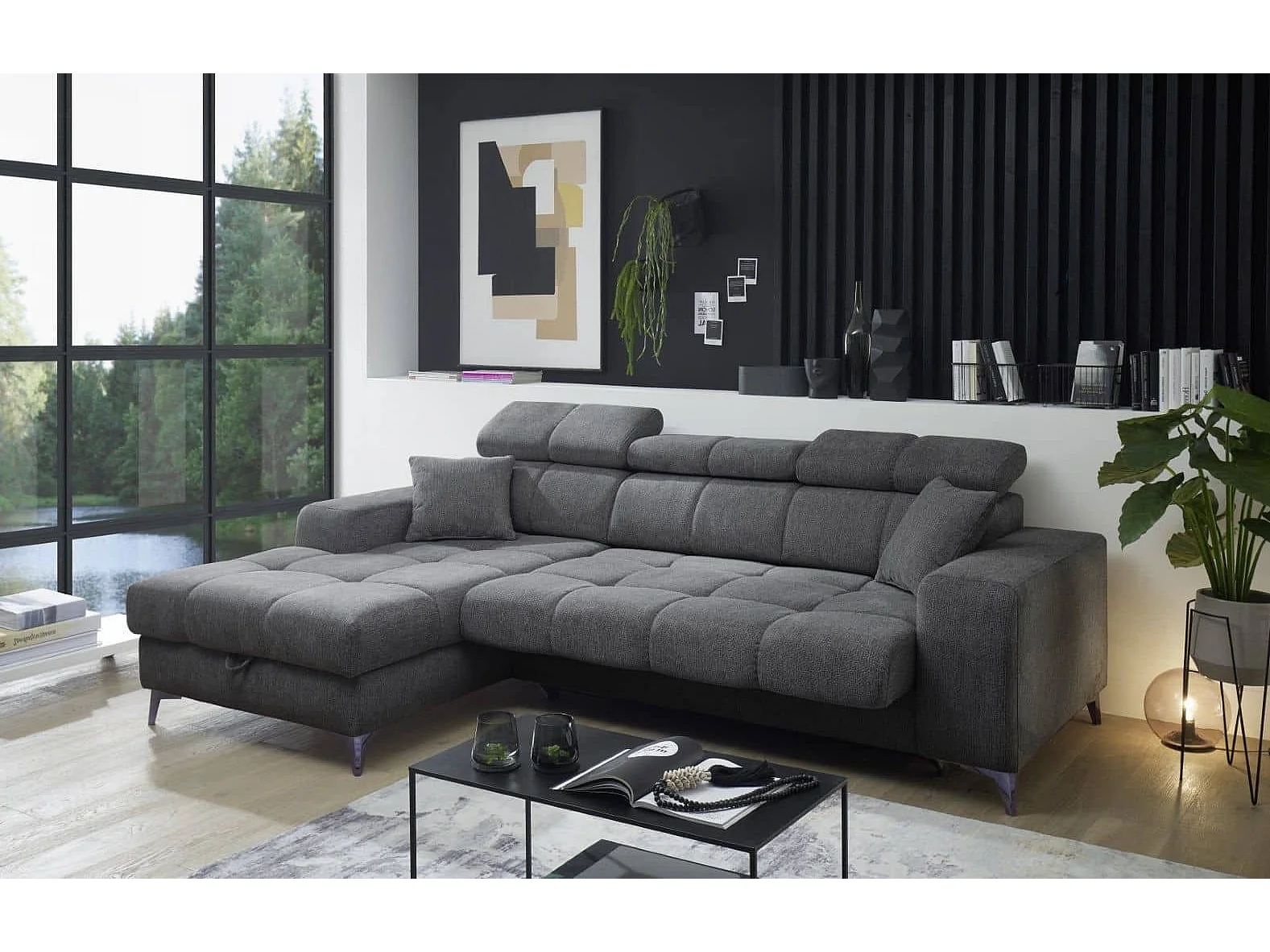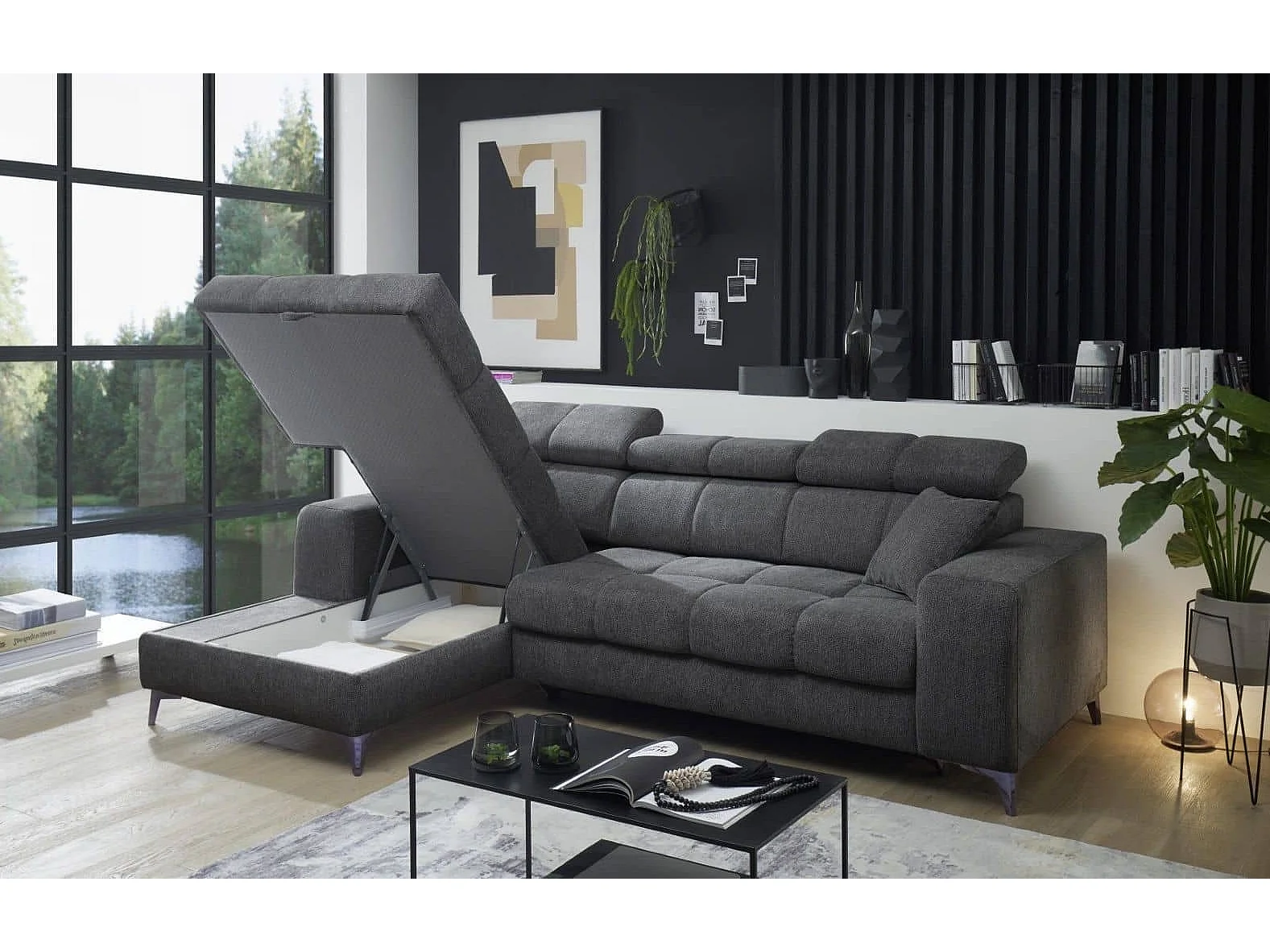 MYHOMELANDO hoekbank Sydney – L-vorm met elektrische zitverstelling en opbergruimte