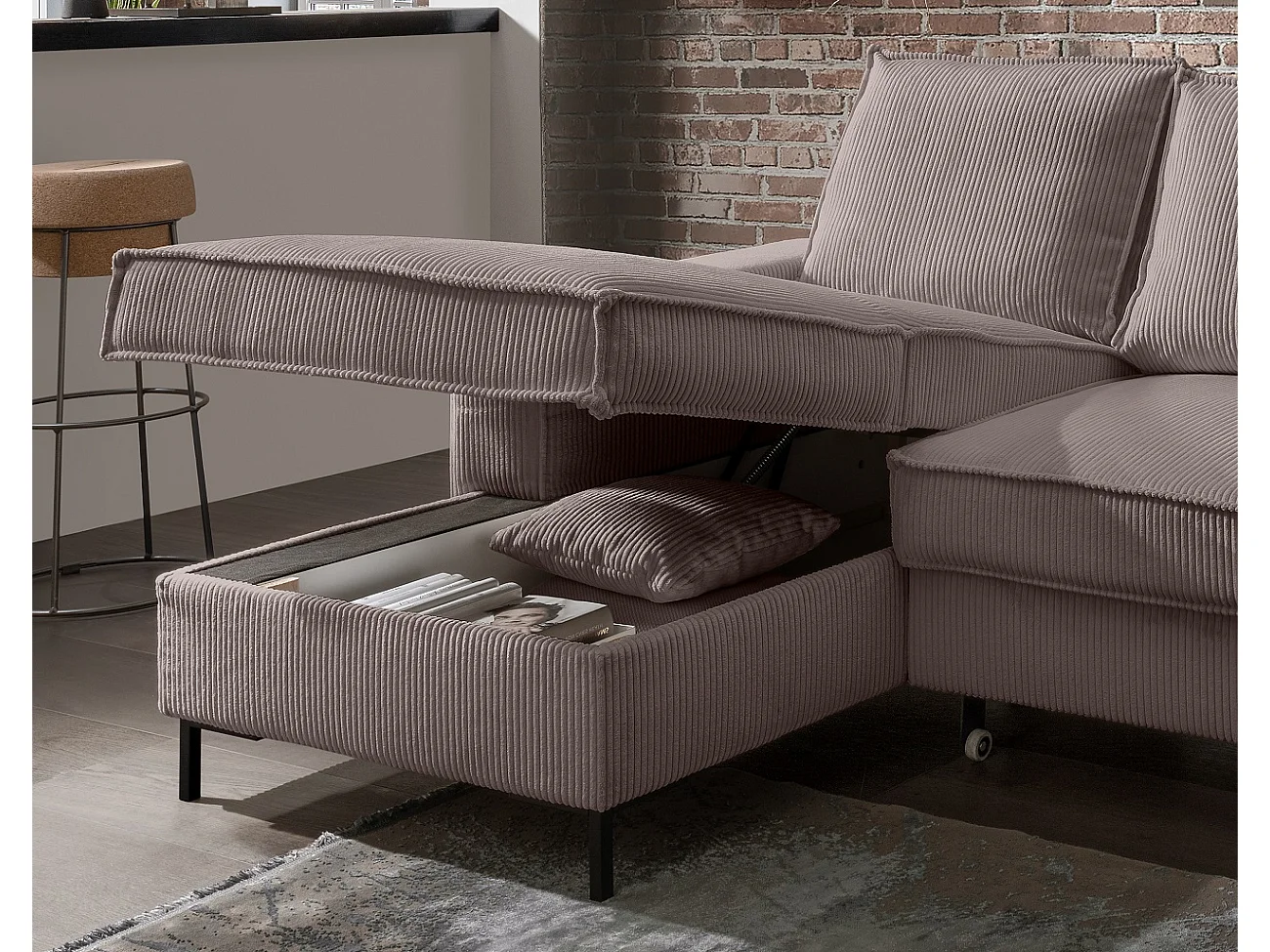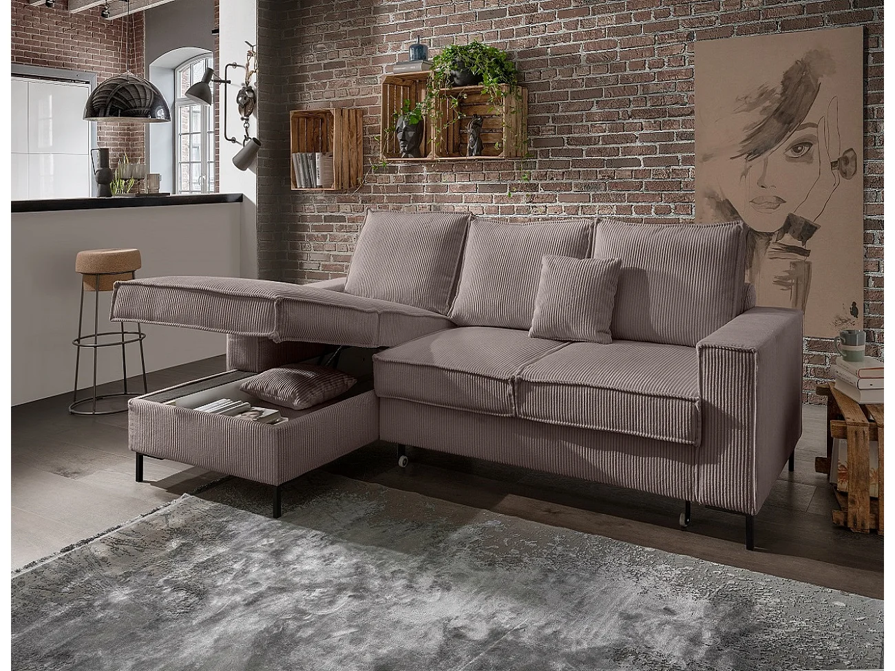 MYHOMELANDO Jerome hoekbank – L-vorm met slaapfunctie en opbergruimte, cordbekleding