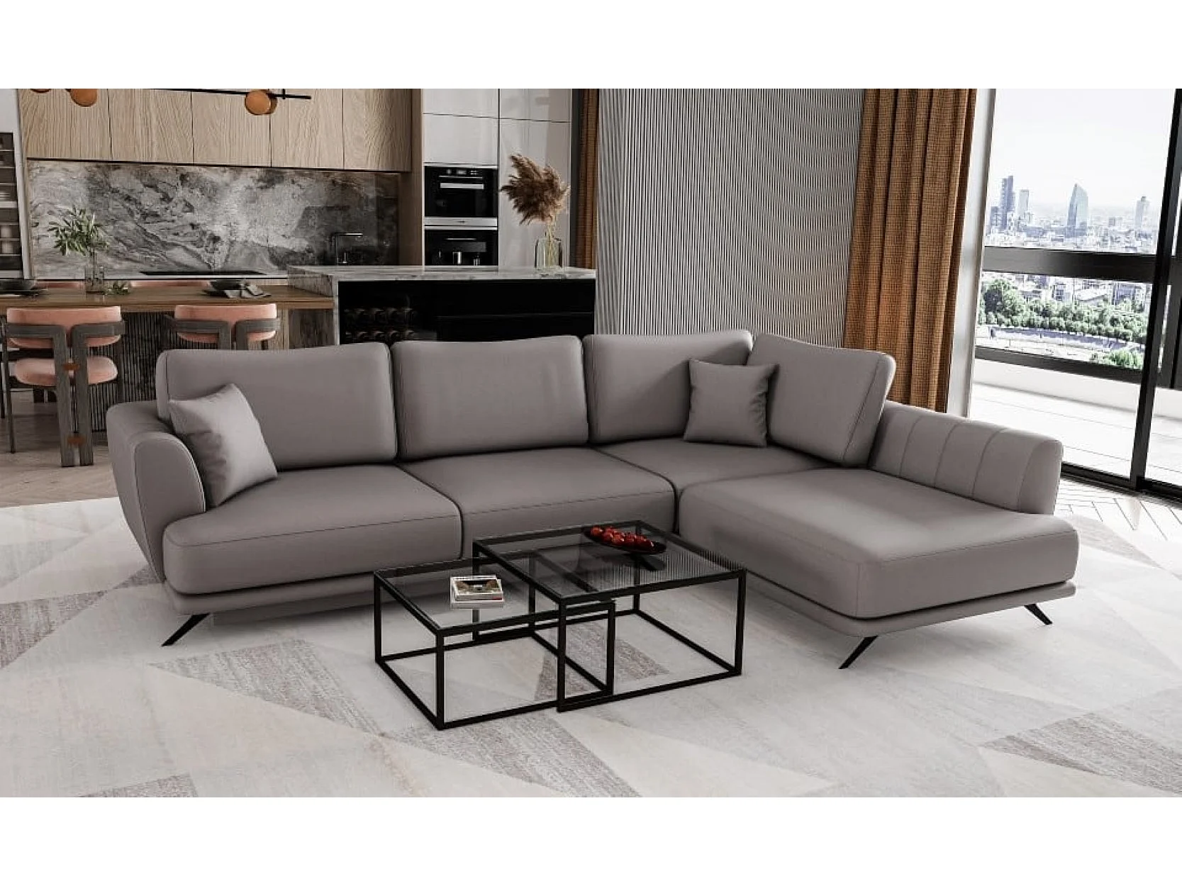 MYHOMELANDO Lagos hoekbank – slaapfunctie en opbergruimte, Softies-stof