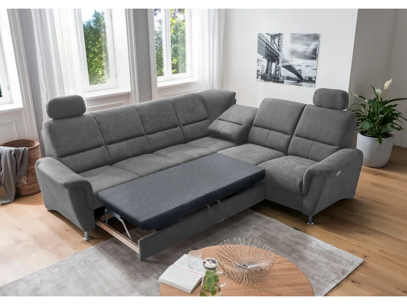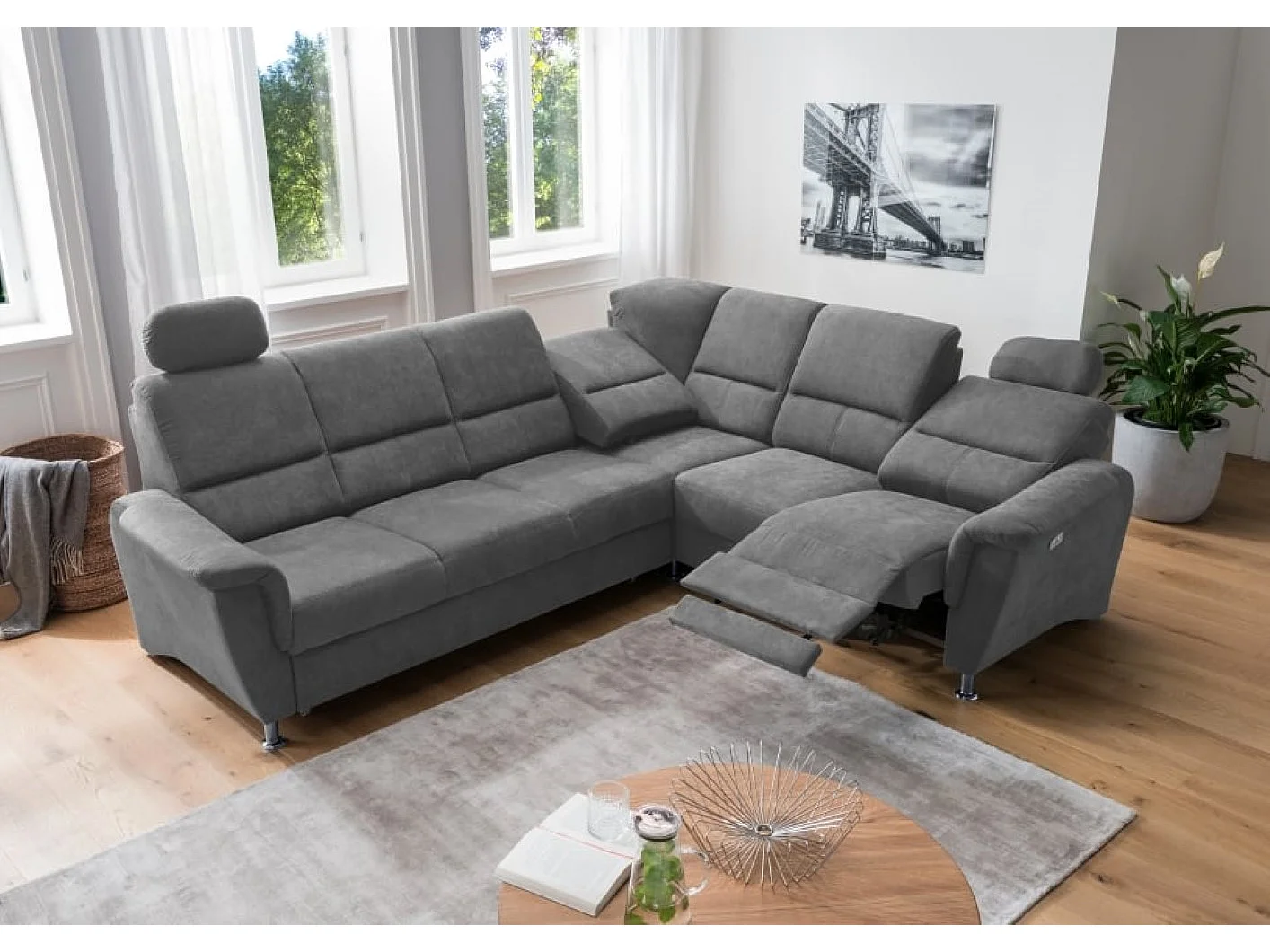 MYHOMELANDO Paris hoekbank – slaapfunctie, elektrische relaxfunctie, USB-aansluiting