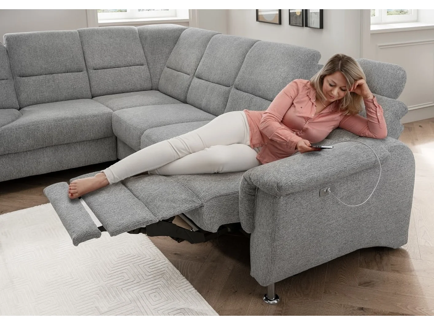 MYHOMELANDO Paris II hoekbank – L-vorm met elektrische relaxfunctie en draaifauteuil