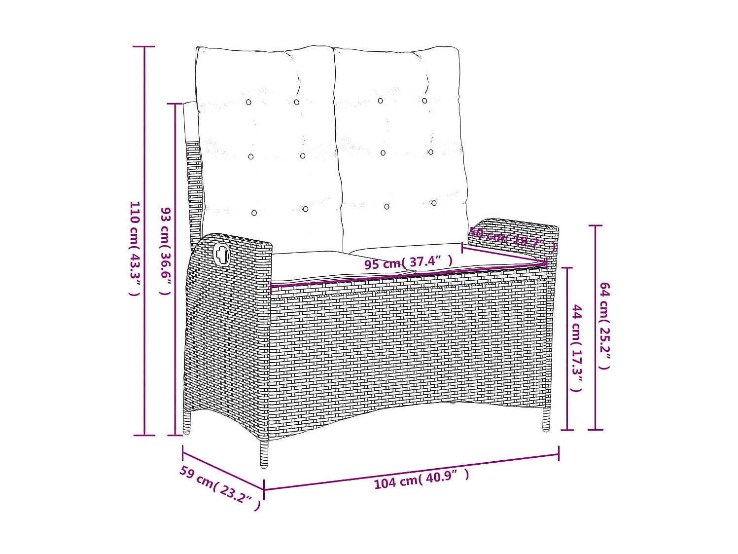 Myrvin 2-delige Tuinset met kussens poly rattan grijs