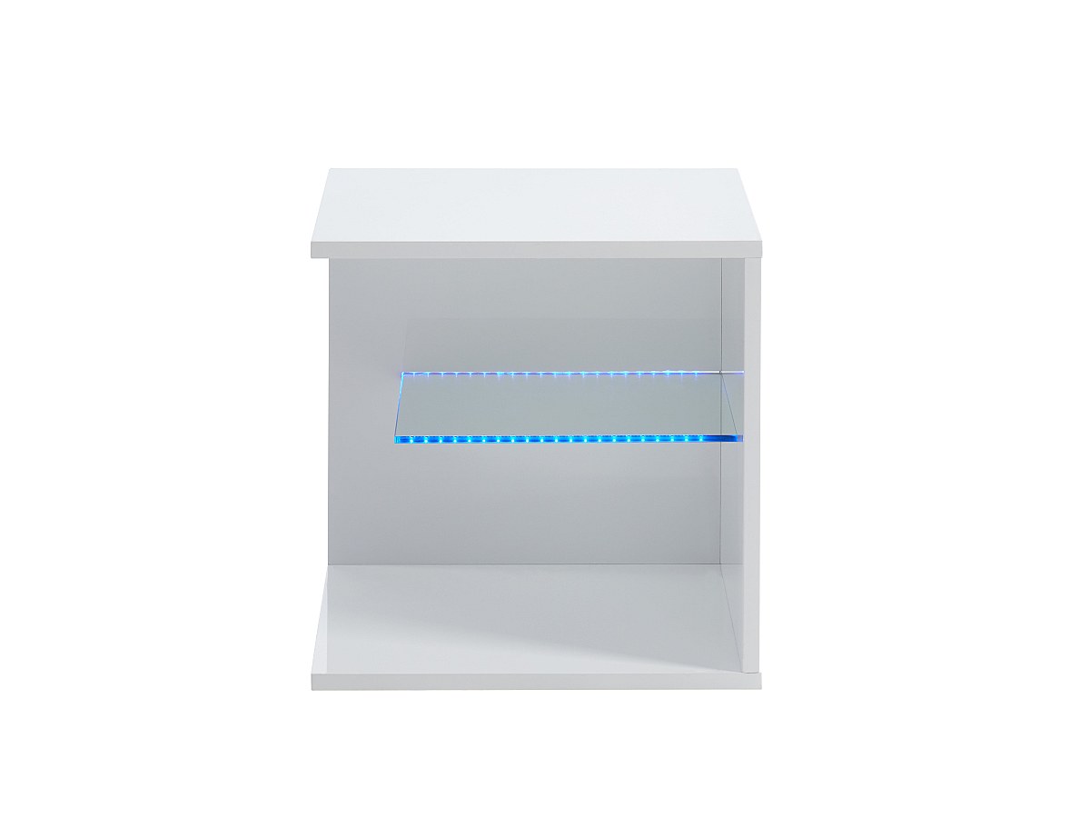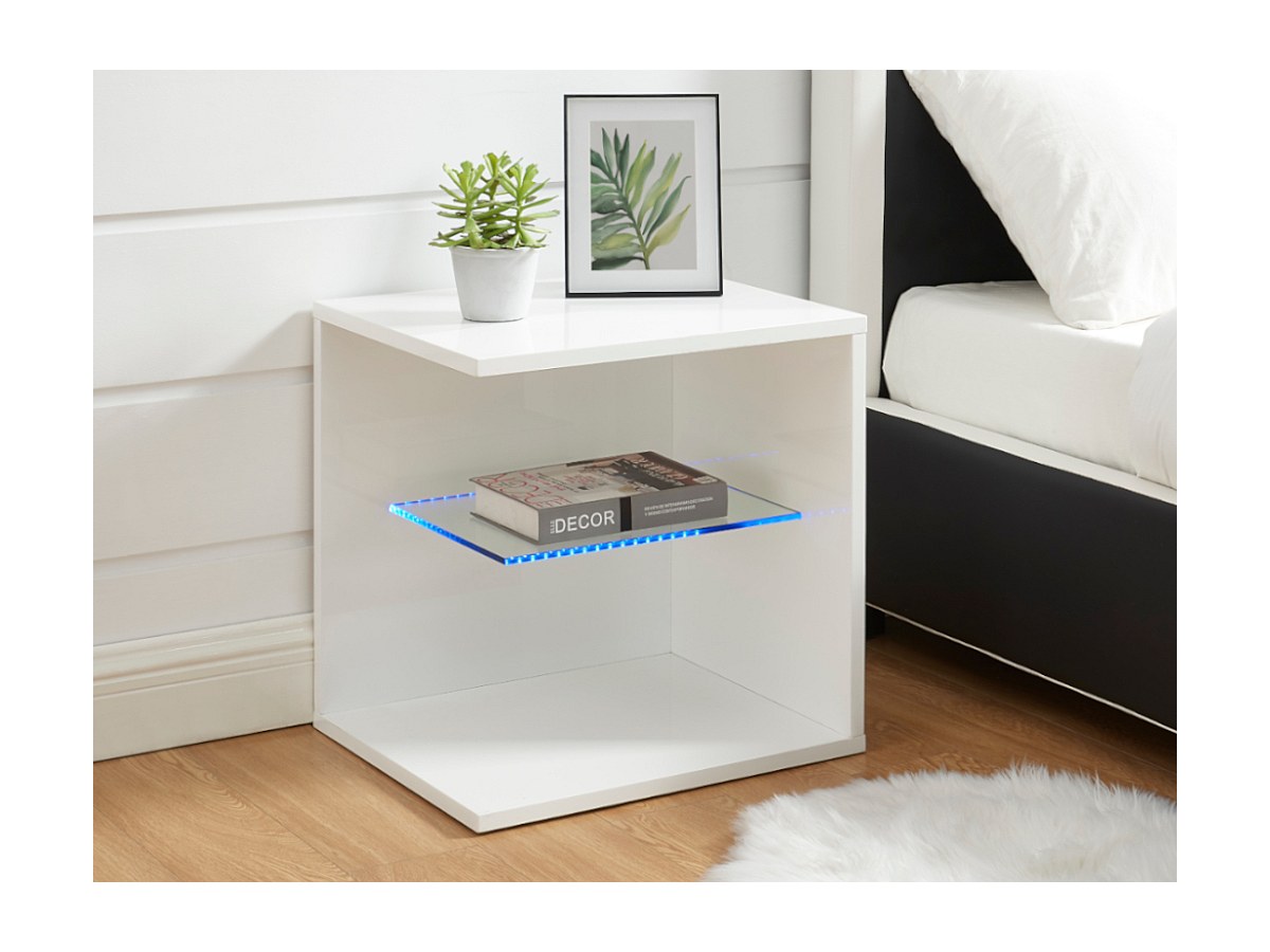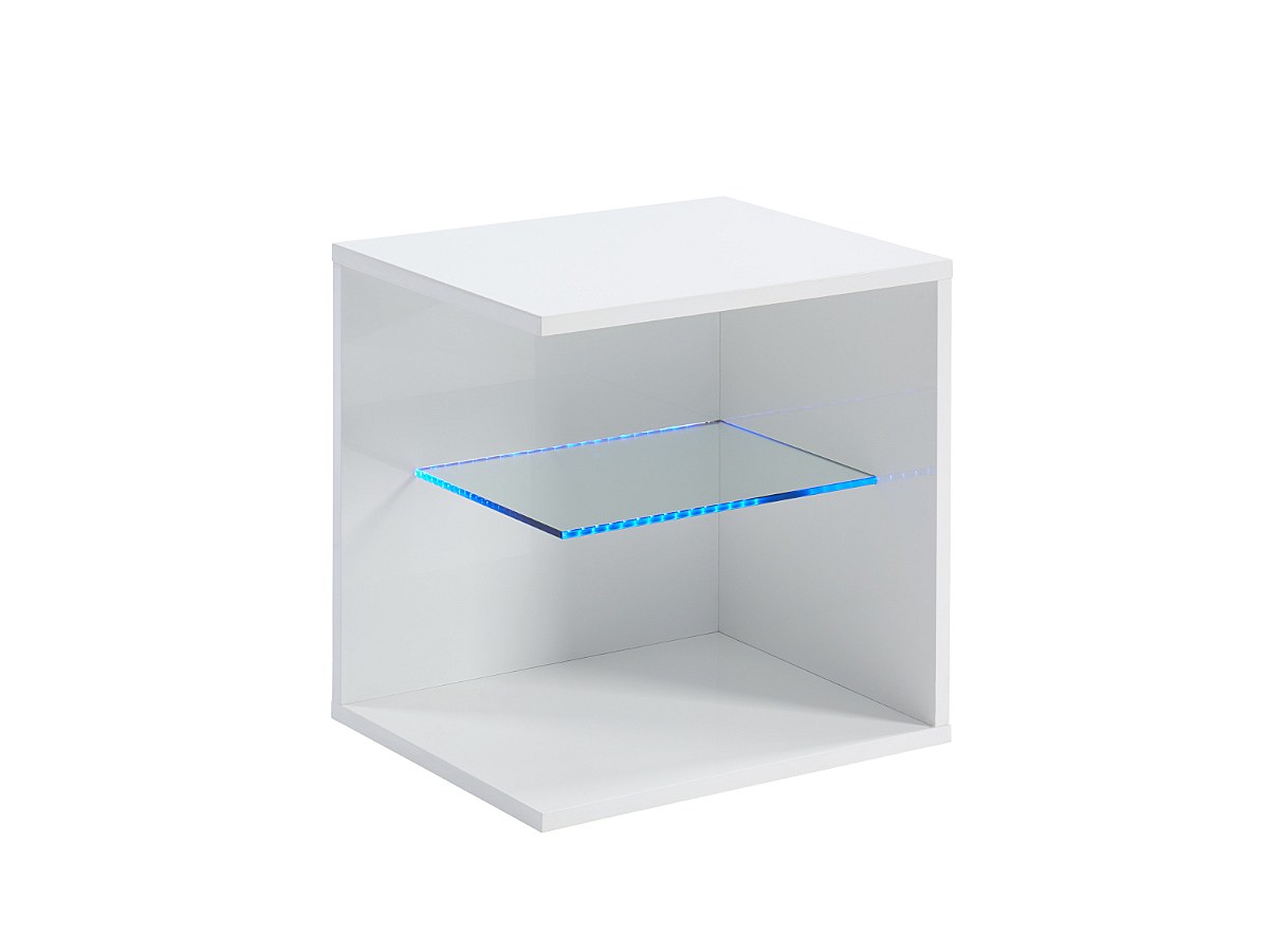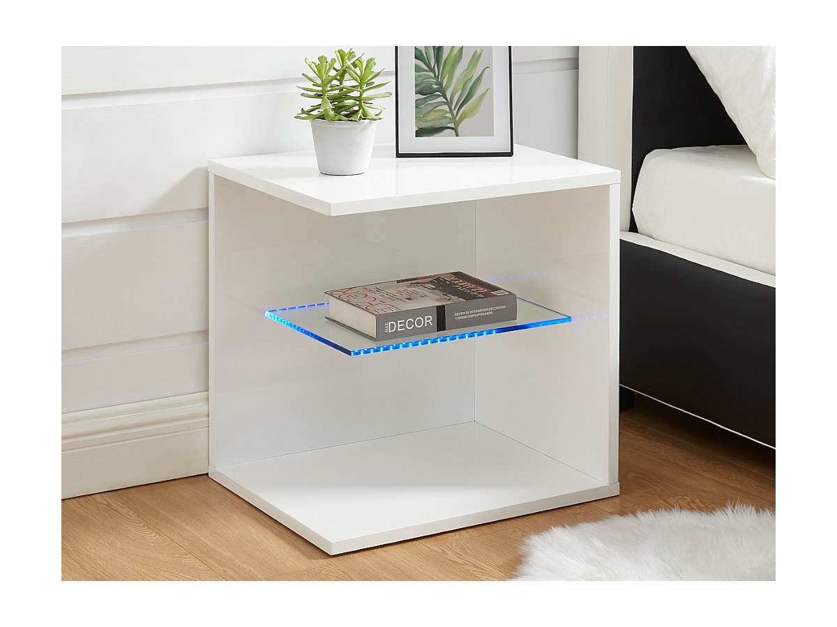 Nachtkastje TOMY - Mdf en gehard glas - Met ledverlichting - Wit gelakt