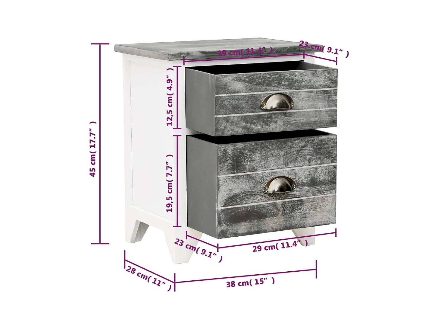 Grijs en wit nachtkastje 38x28x45 cm Paulowniahout
