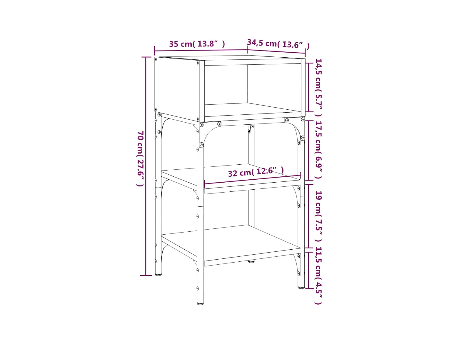Nachtkastje 35x34,5x70 cm bewerkt hout bruin eikenkleurig