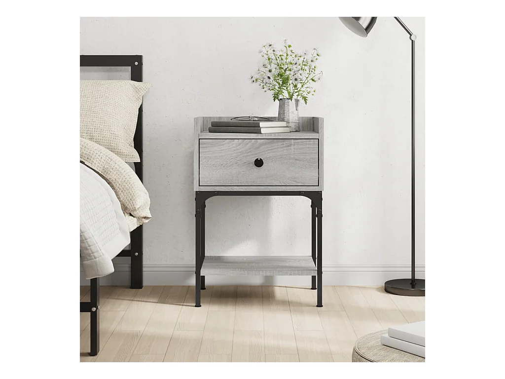 Nachtkastje 40x42x60 cm bewerkt hout grijs sonoma eikenkleurig