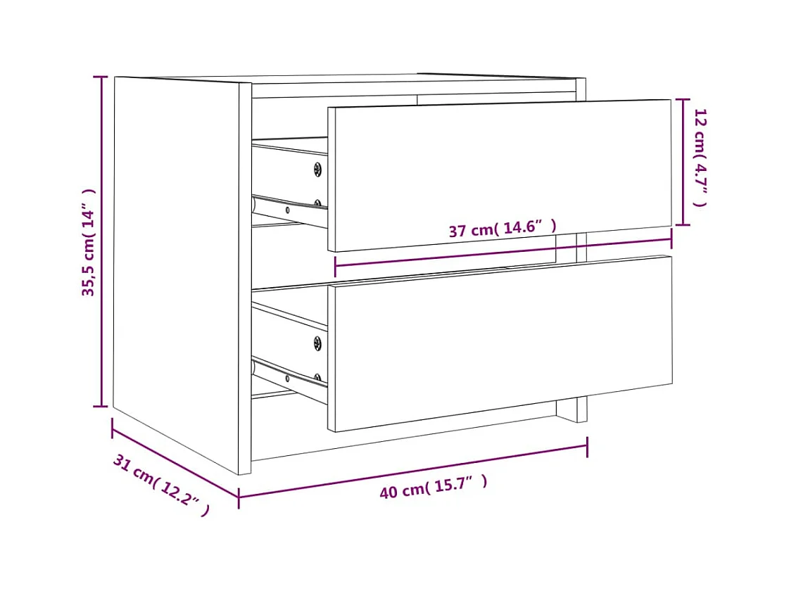 Nachtkastjes 2 stuks 40x31x50 cm massief grenenhout