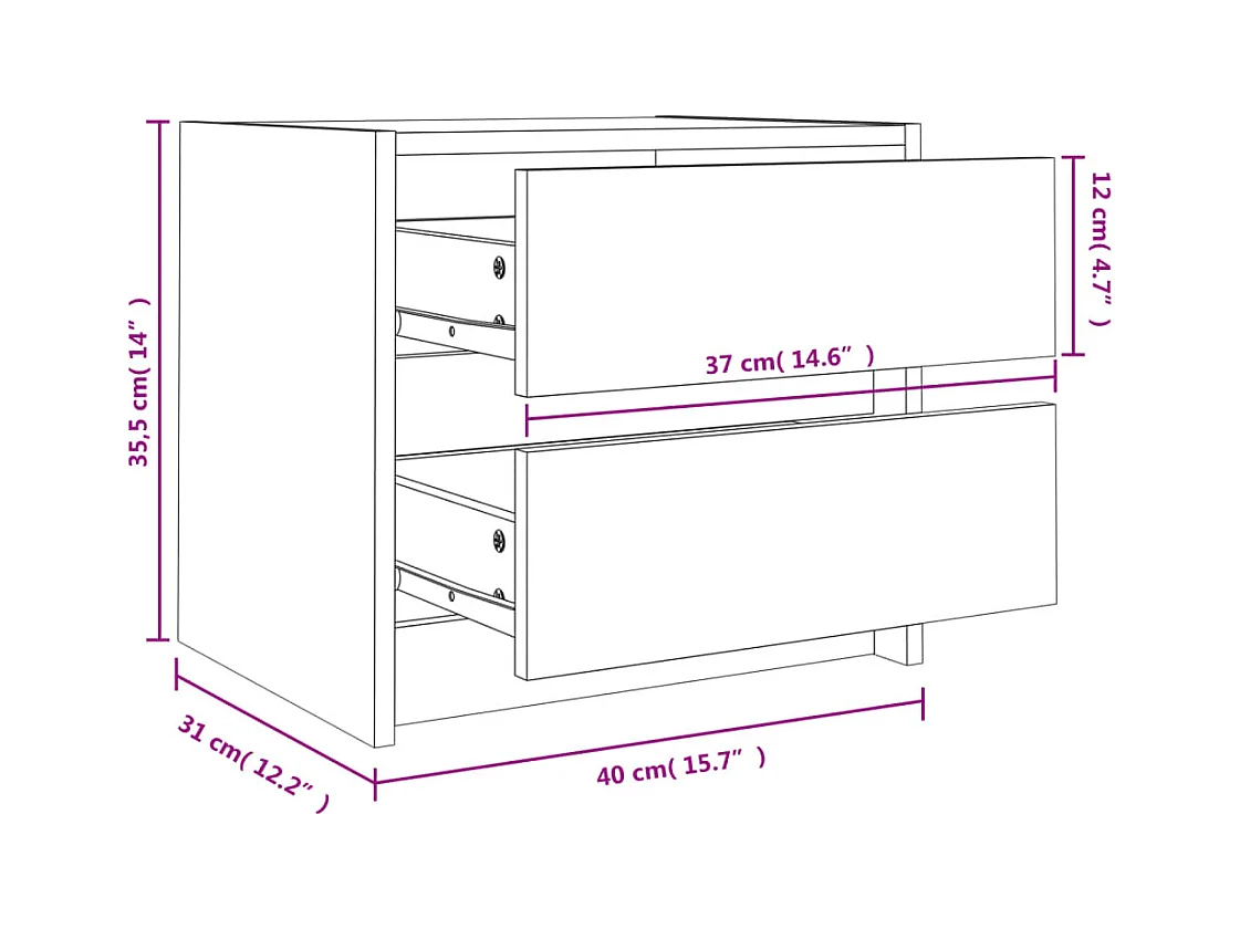 Nachtkastjes 2 st 40x35x47,5 cm bewerkt hout hoogglans wit