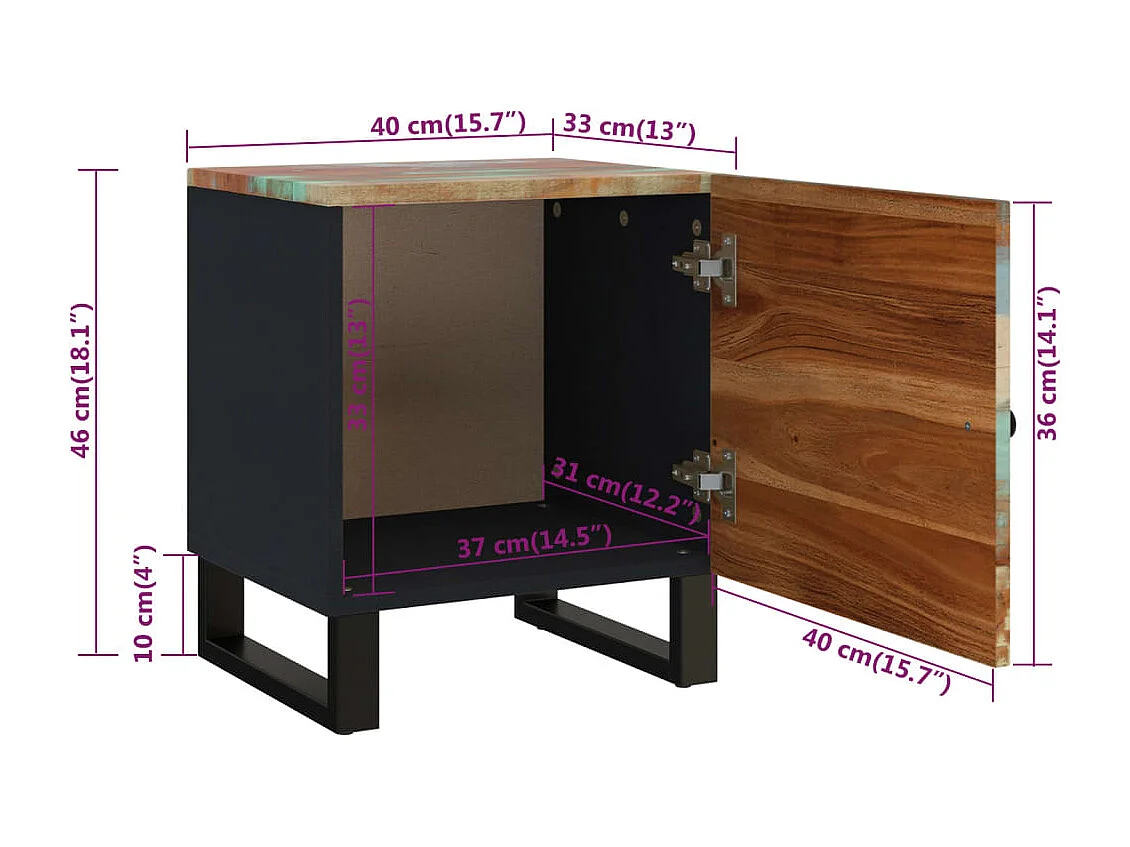 Nachtkastje 40x33x46 cm massief gerecycled hout
