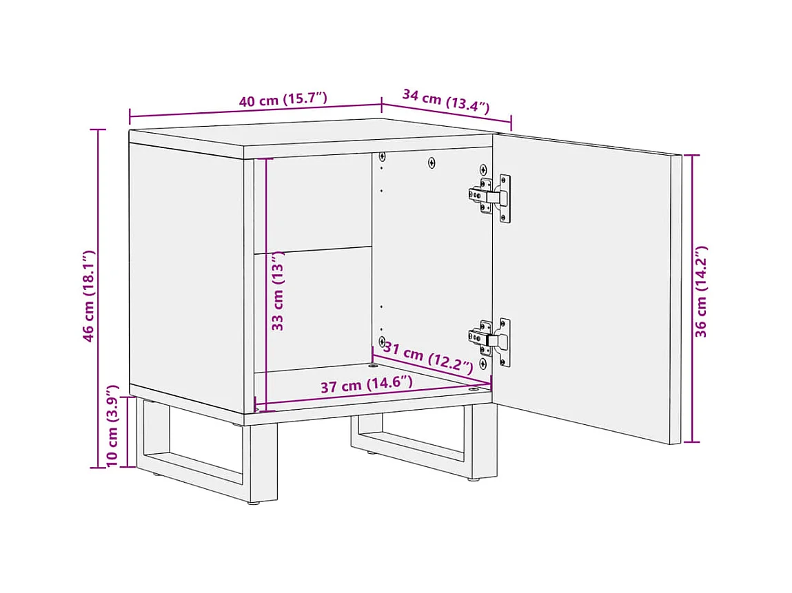 Nachtkastje 40x34x46 cm massief ruw mangohout