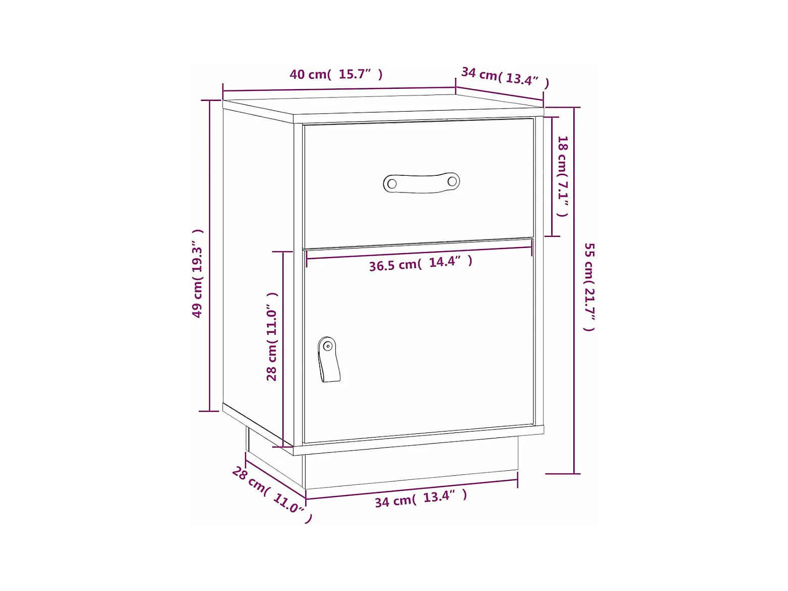 Nachtkastje 40x34x55 cm massief grenenhout wit