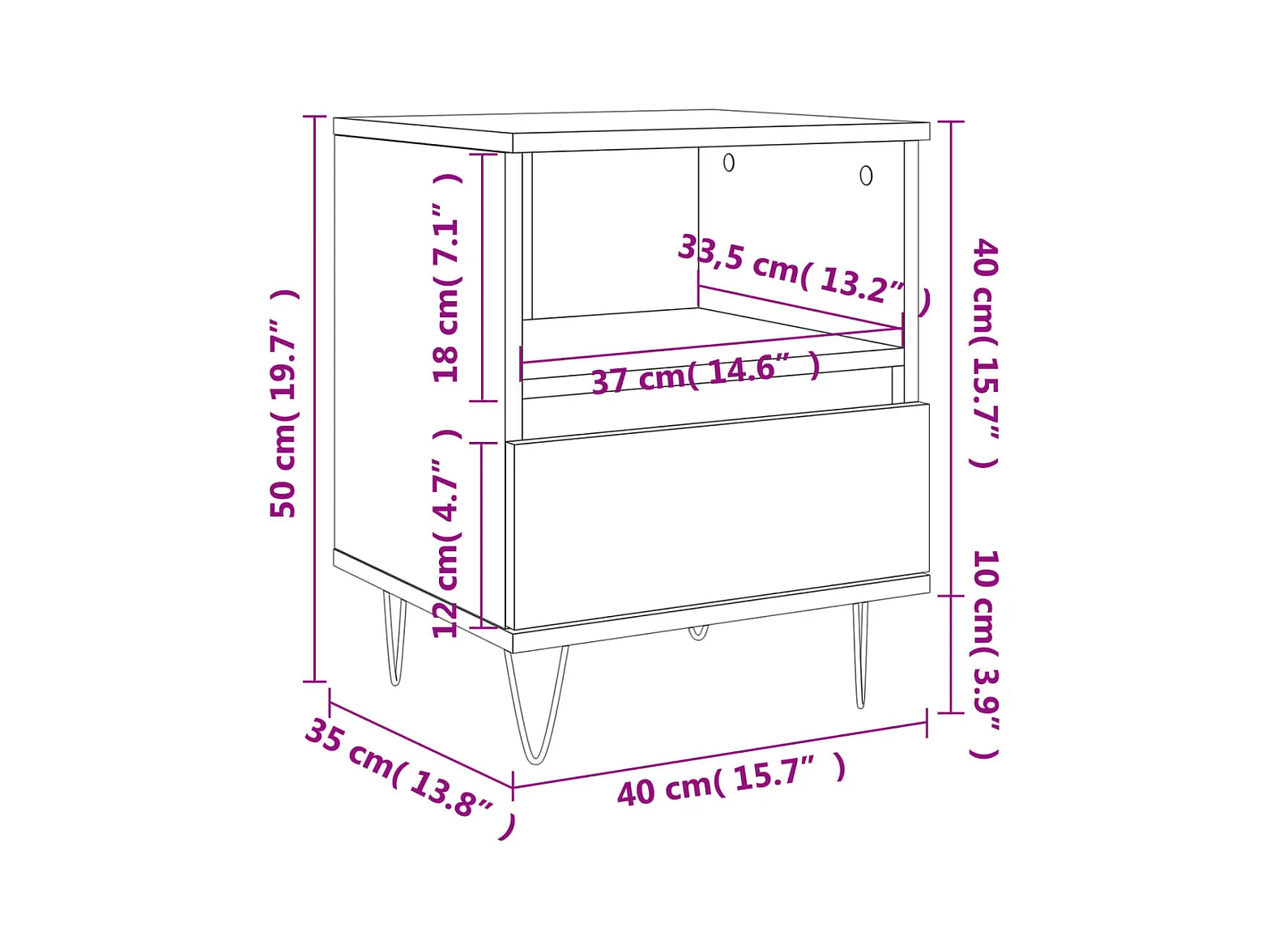 Nachtkastje 40x30x50 cm bewerkt hout hoogglans wit