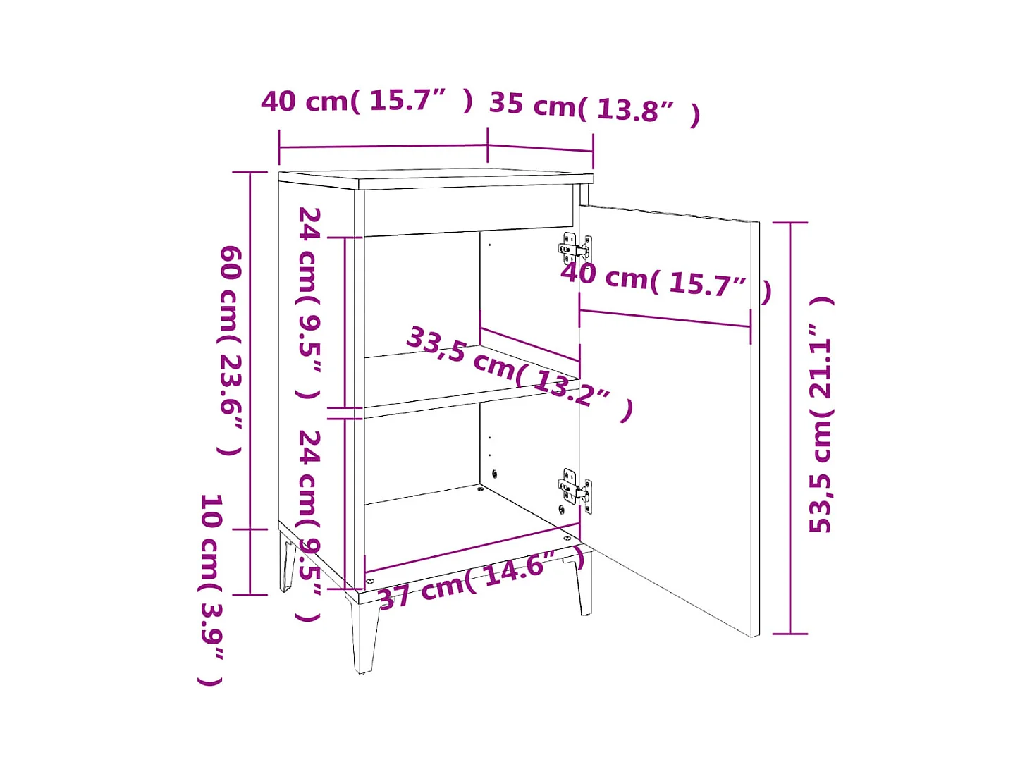 Nachtkastje 38x35x56 cm bewerkt hout wit