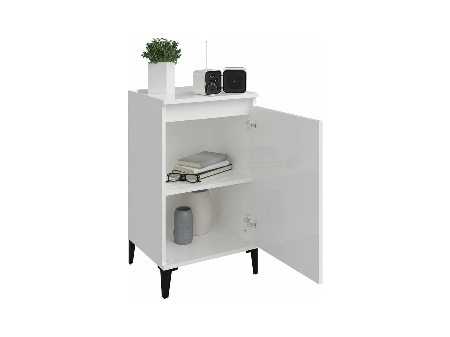 Nachtkastje 40x30x30 cm bewerkt hout hoogglans wit