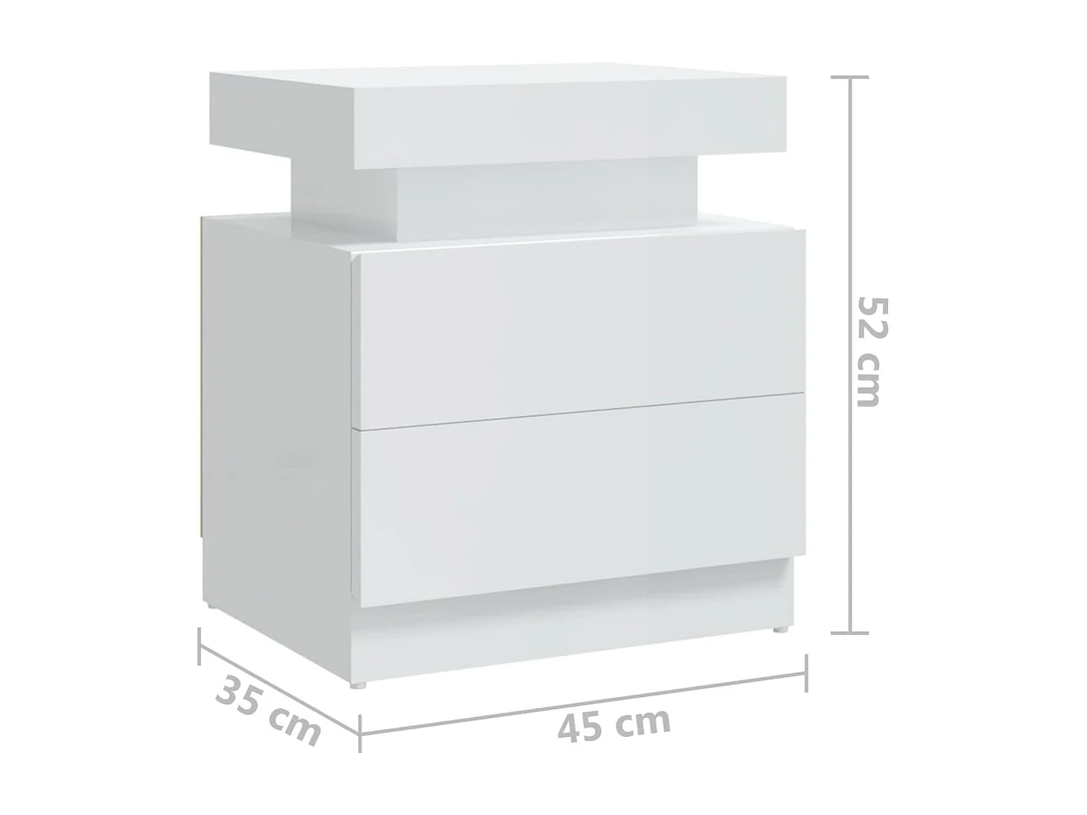 Nachtkastje 45x35x52 cm bewerkt hout hoogglans wit