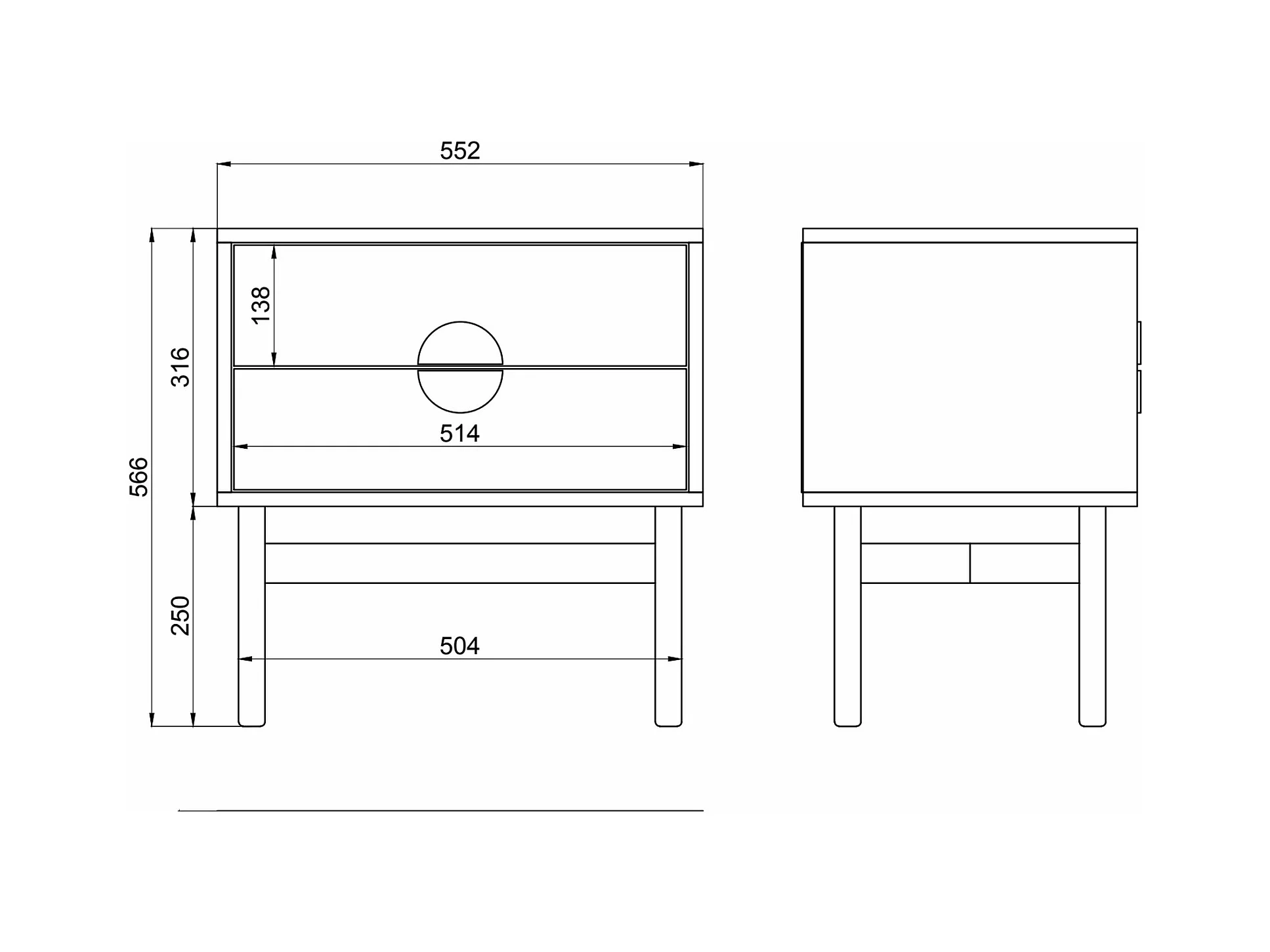 Nachtkastje - 50 cm wit met zwarte poten - VELDIO