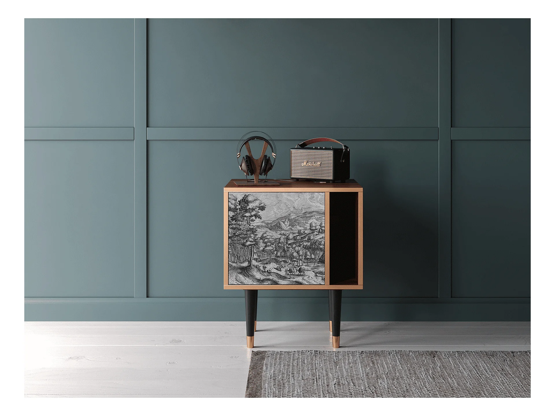 Nachtkastje - 57х69х48 cm - S2 - Blue Giraffe, Walnoot