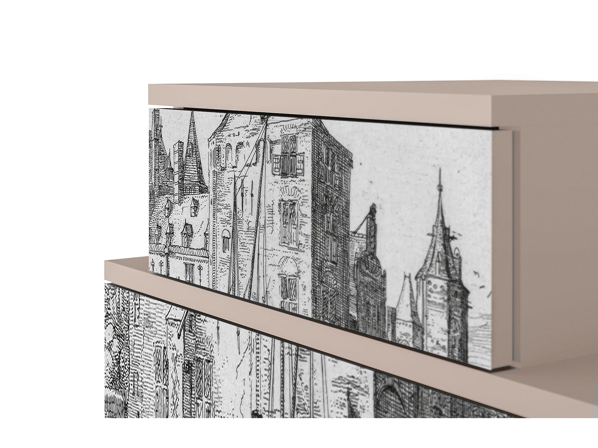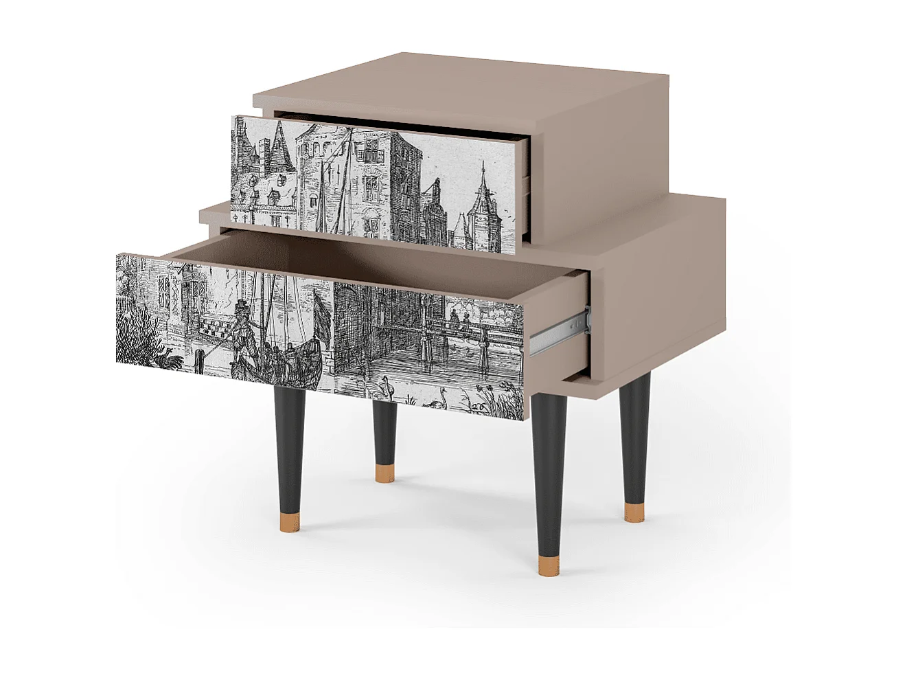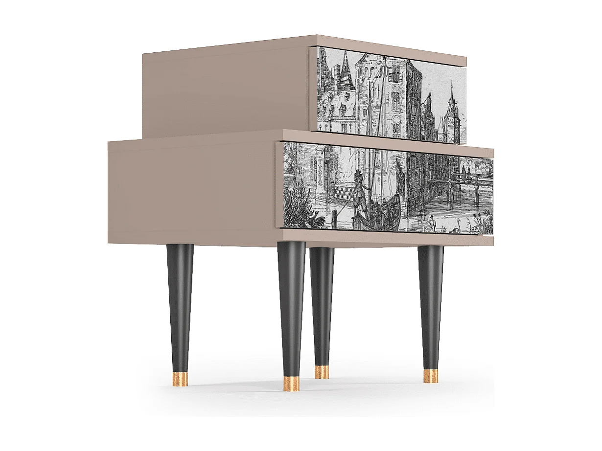 Nachtkastje - 58х58х41 cm - NS1 - Castle with Bridge, Latte