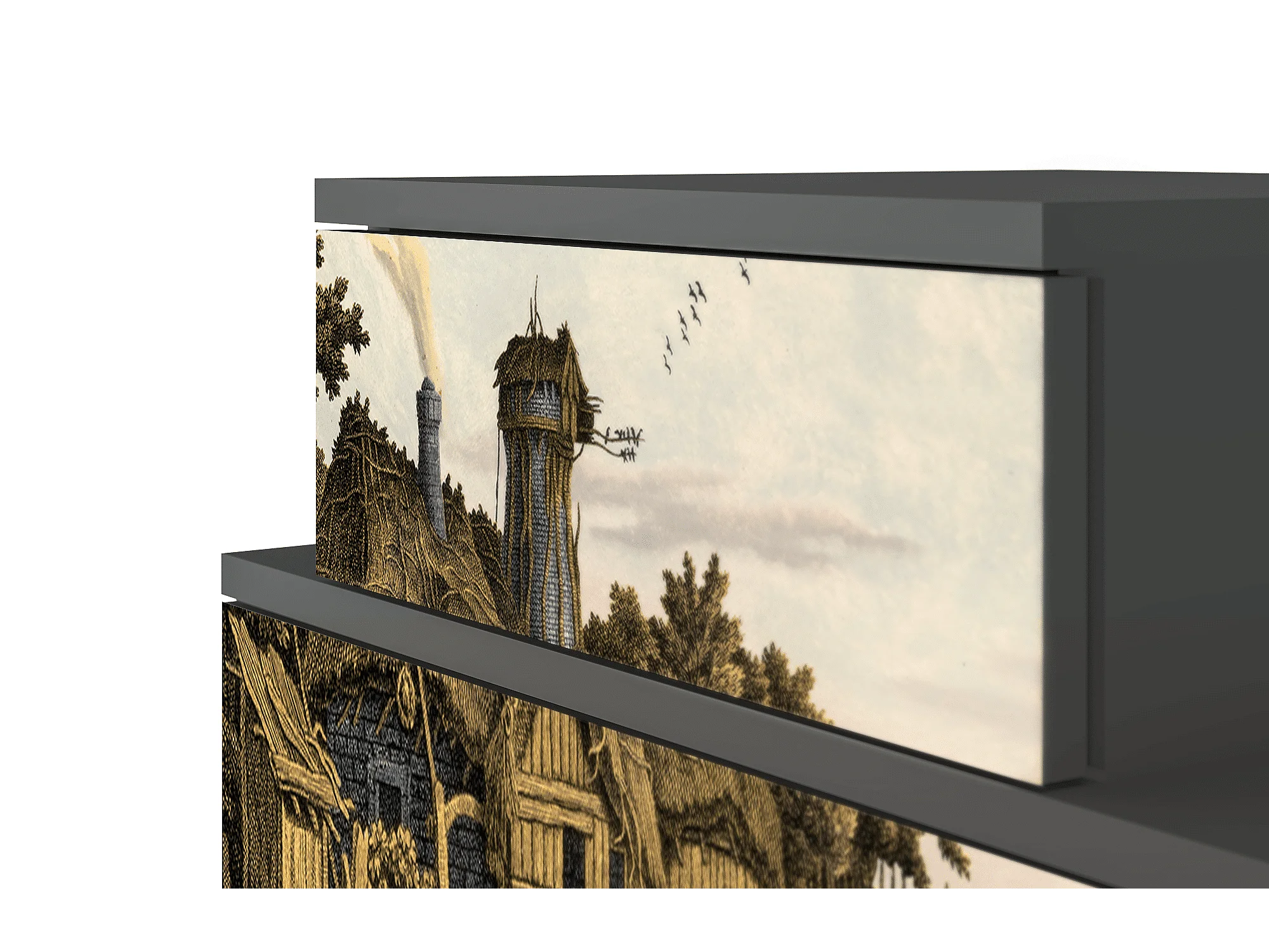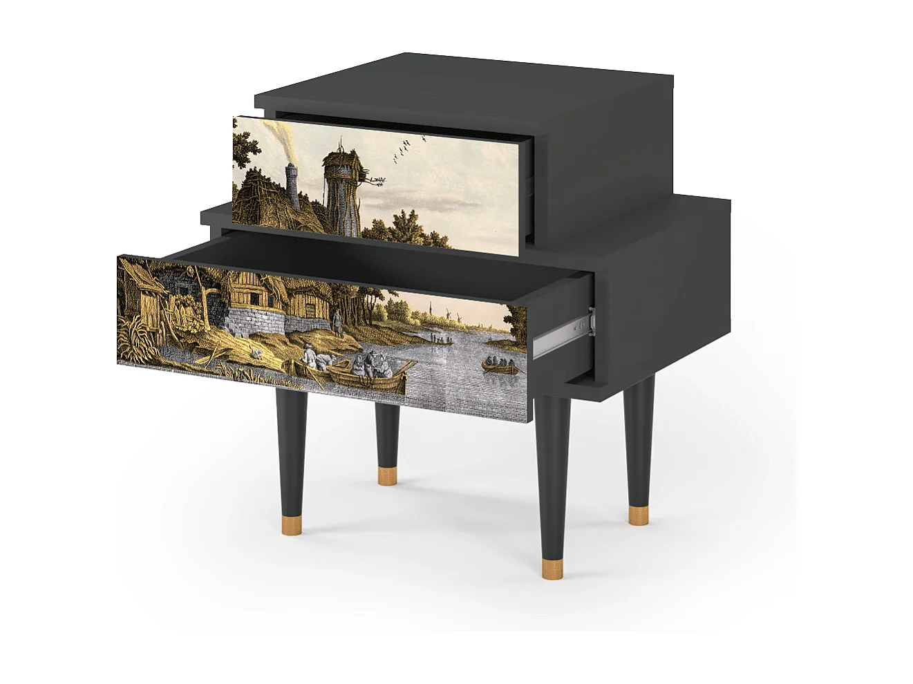 Nachtkastje - 58х58х41 cm - NS1 - Mill along a River, Antraciet