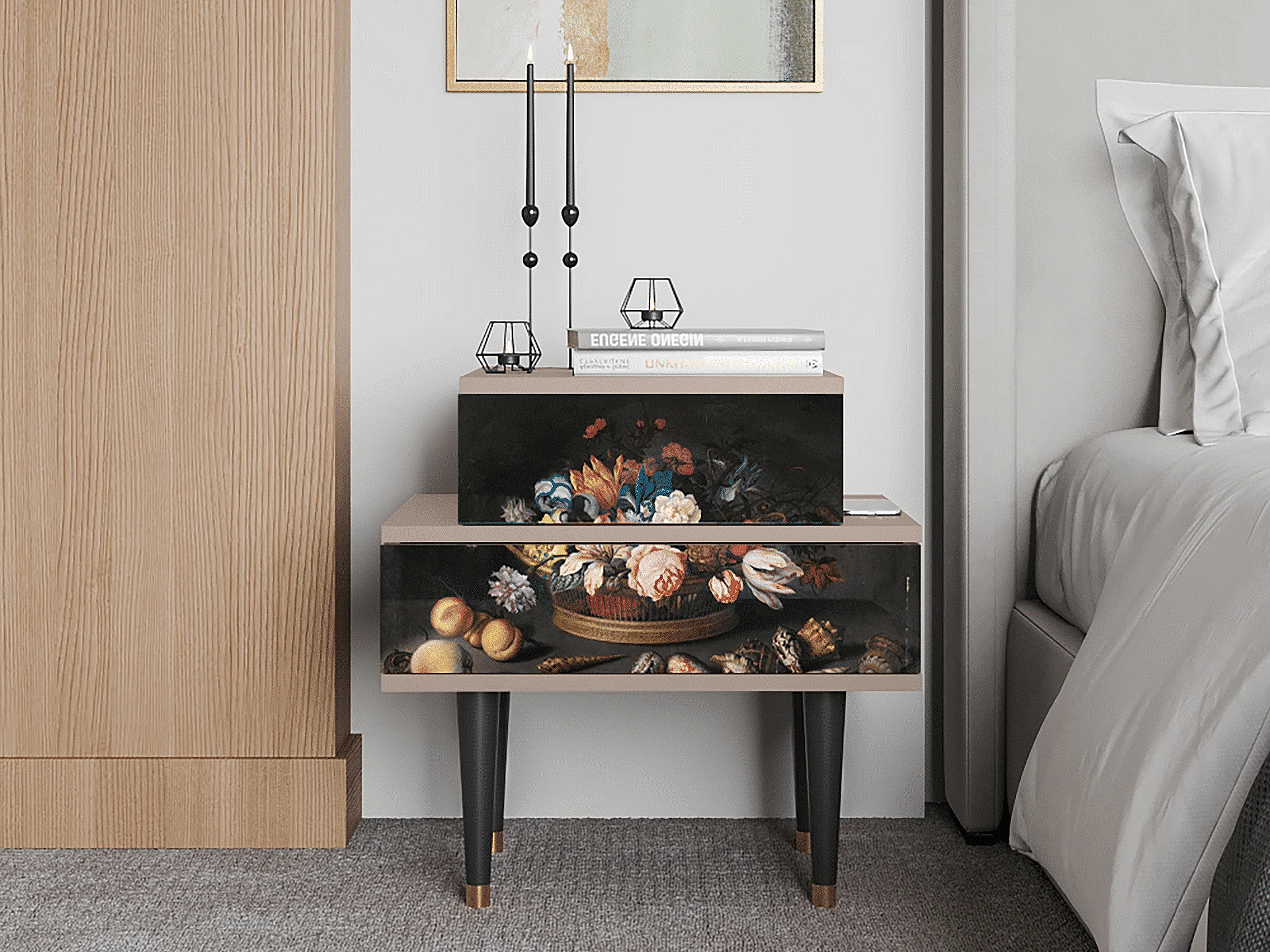 Nachtkastje - 58х58х41 cm - NS1 - Still Life with Flowers, Latte