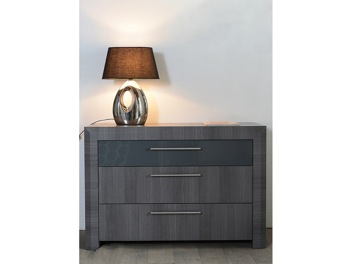 Commode BRITANY - 3 laden - Afwerking grijs iepenhouteffect