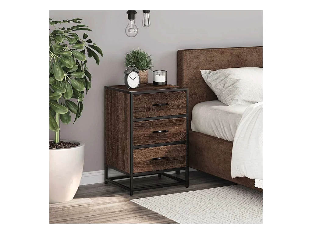 Nachtkastje bruin eiken 40x34,5x60cm bewerkt hout metaal
