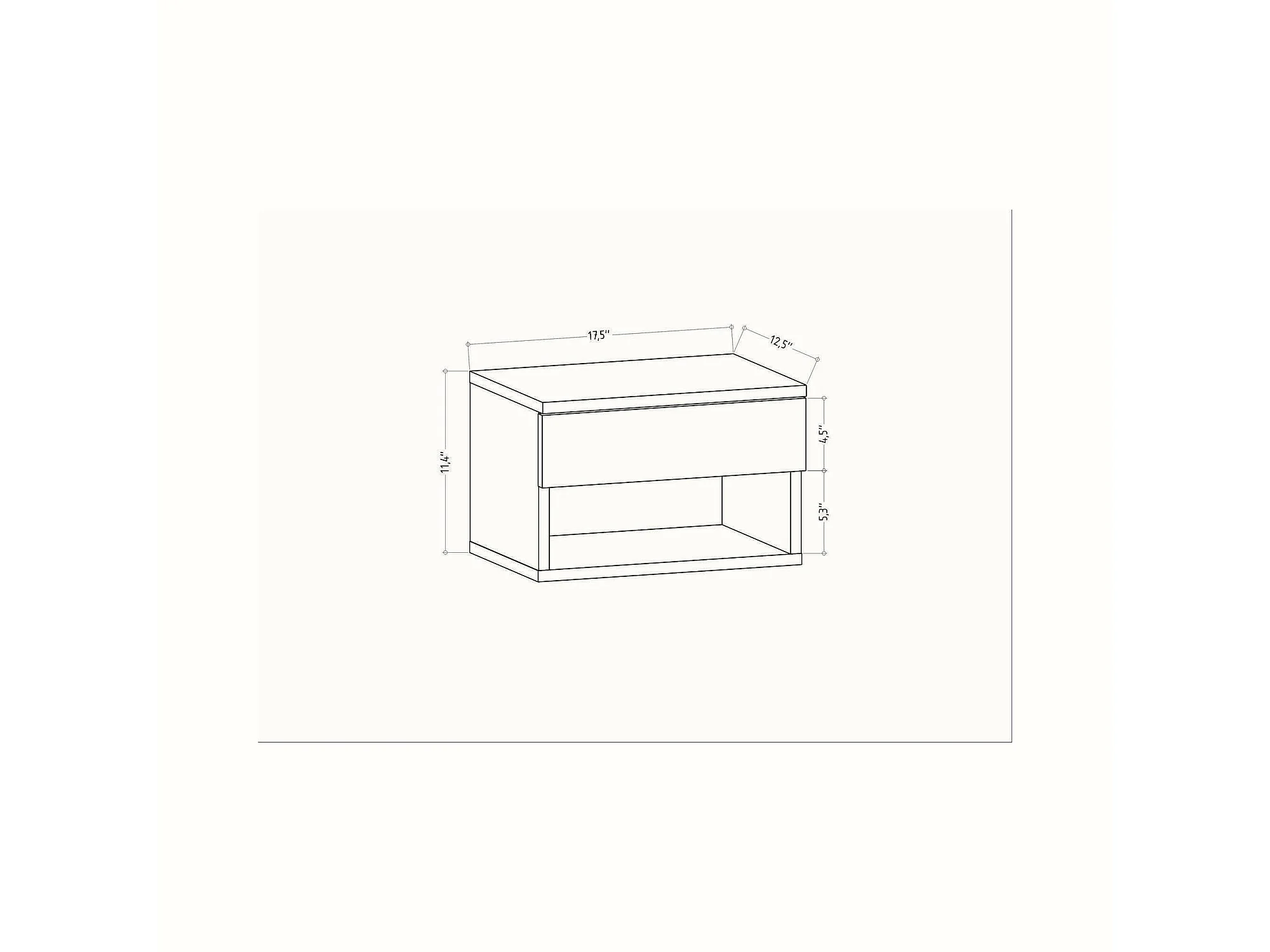 Drull nachtkastje, Lage ladekast, Nachtkastje, Bedplank, 44x38 h54 cm, Zwart