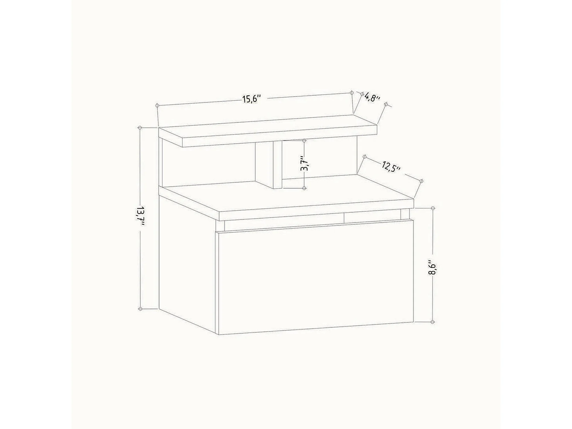 Druss nachtkastje, Lage ladekast, Nachtkastje, Bedplank, 38x36 h48 cm, Wit