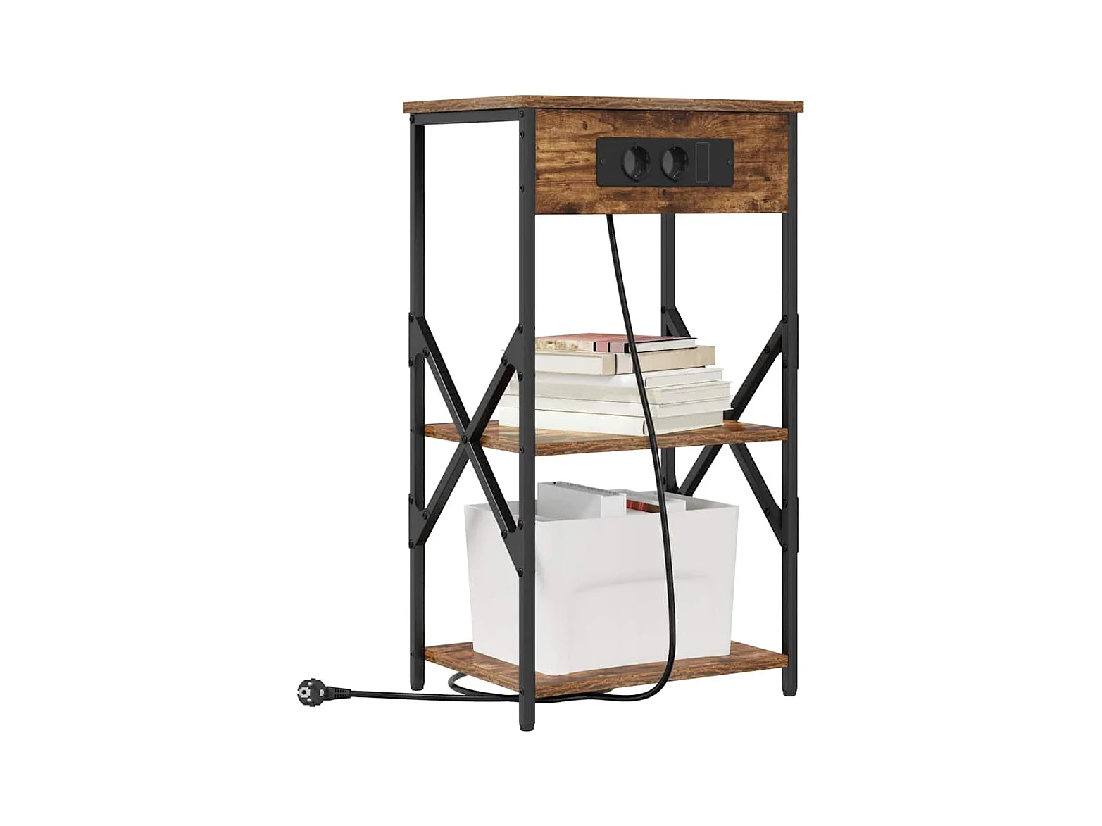 Nachtkastje met oplaadstation 2 stuks Gerookt eikenhout