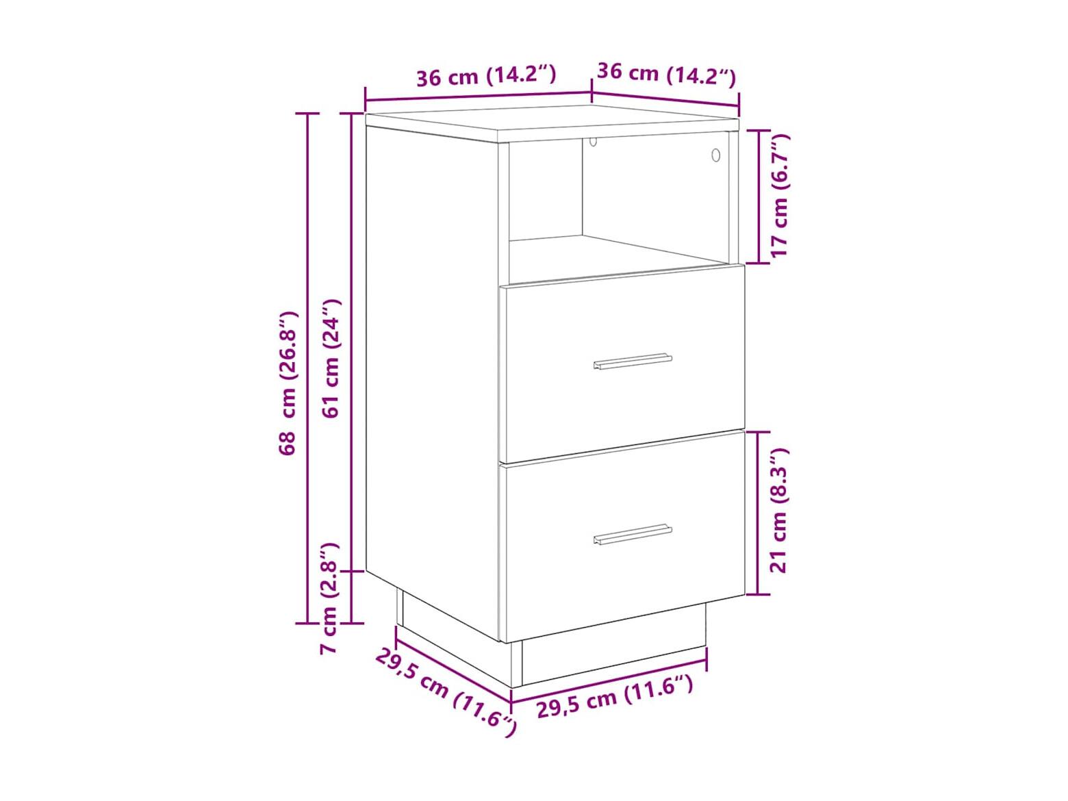 Nachtkastje met 2 lades 36x36x68 cm gerookt eikenkleurig