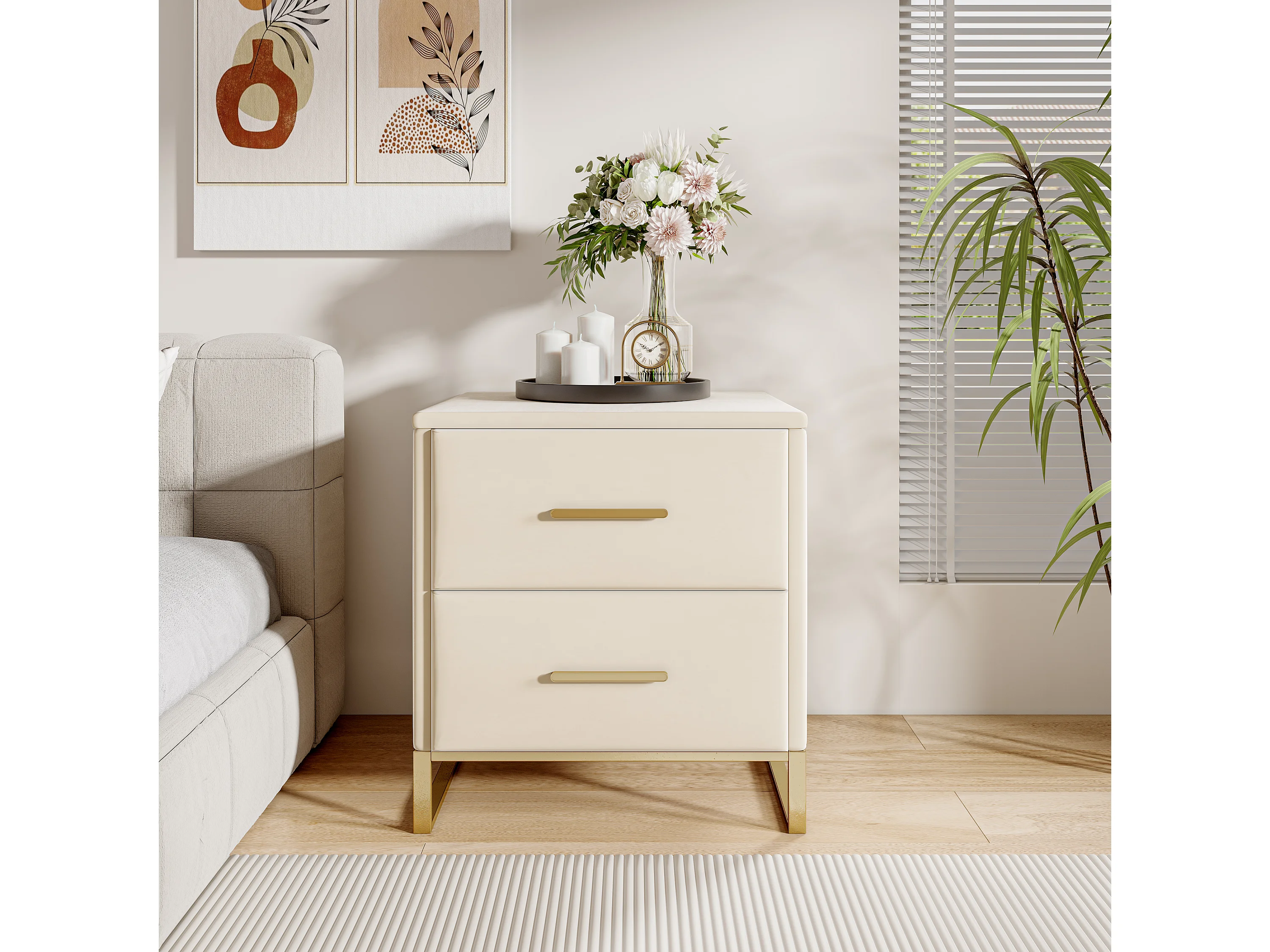 Nachtkastje met 2 lades - Set van 2 - voor woonkamer, slaapkamer, fluweel, beige