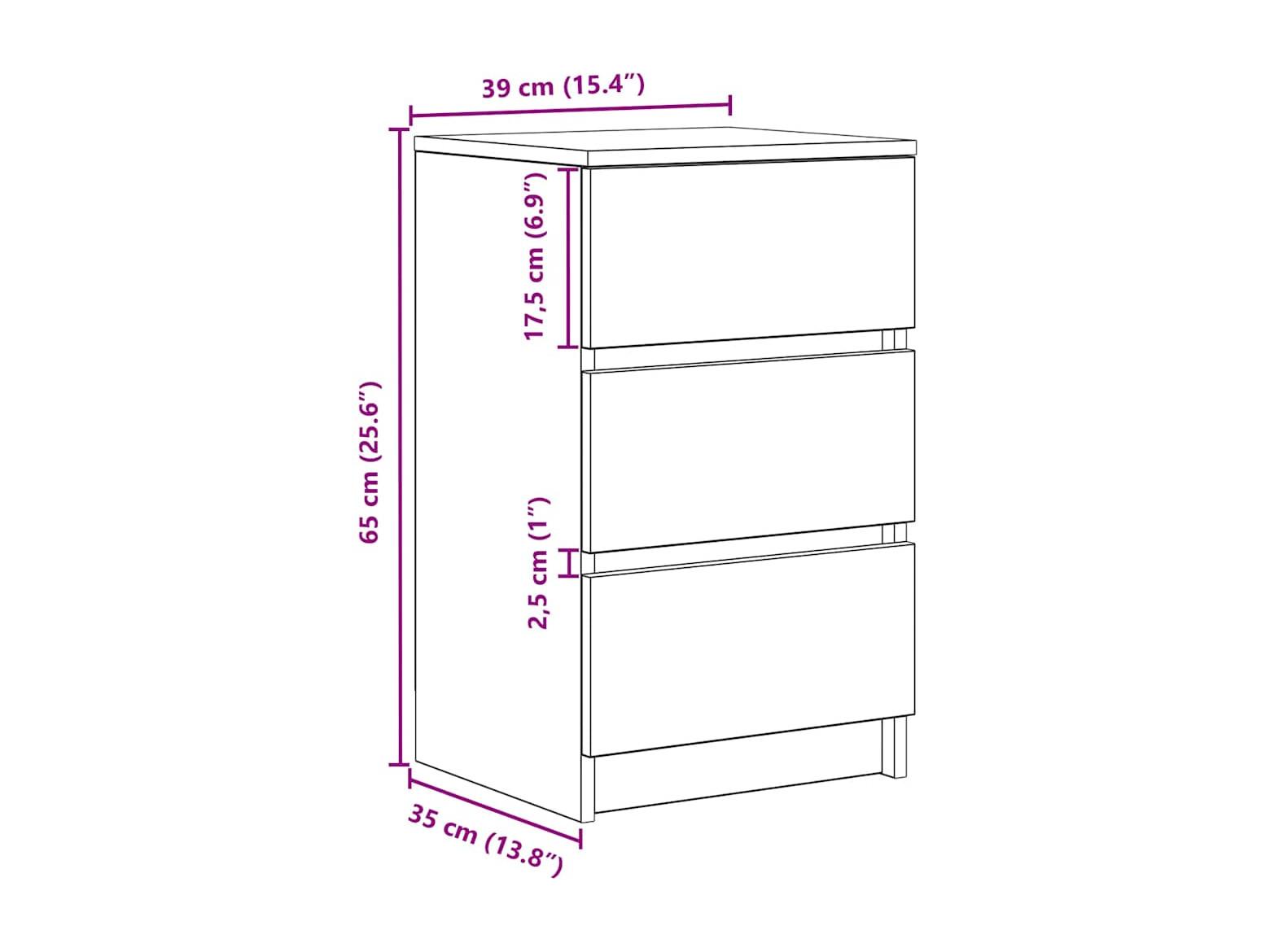 Nachtkastje met 3 lades 39x35x65 cm gerookt eikenkleurig