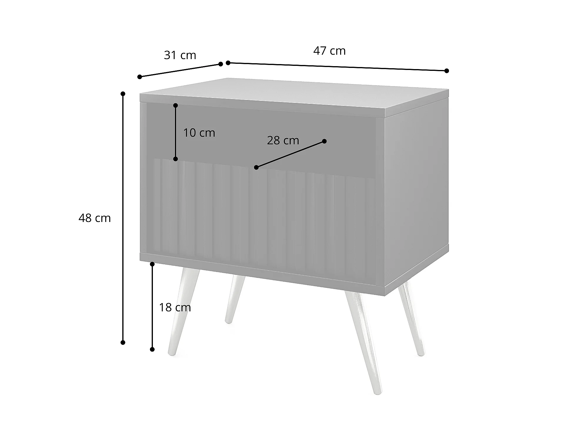 Nachtkastje Miranda met 2 laden Wit, Gelakt MDF, Houten poten