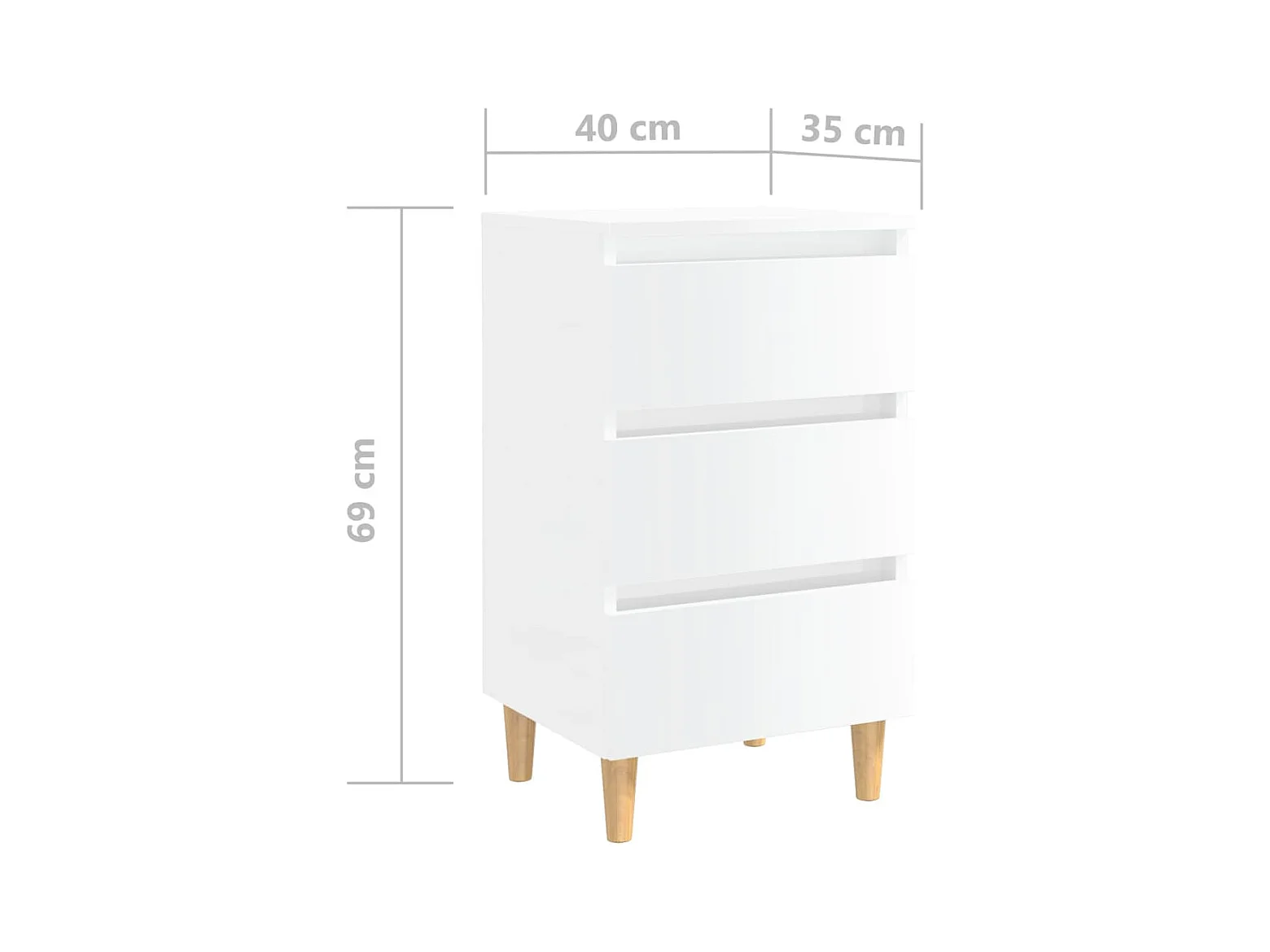 Nachtkastje met massief houten poten Wit 40x35x69 cm
