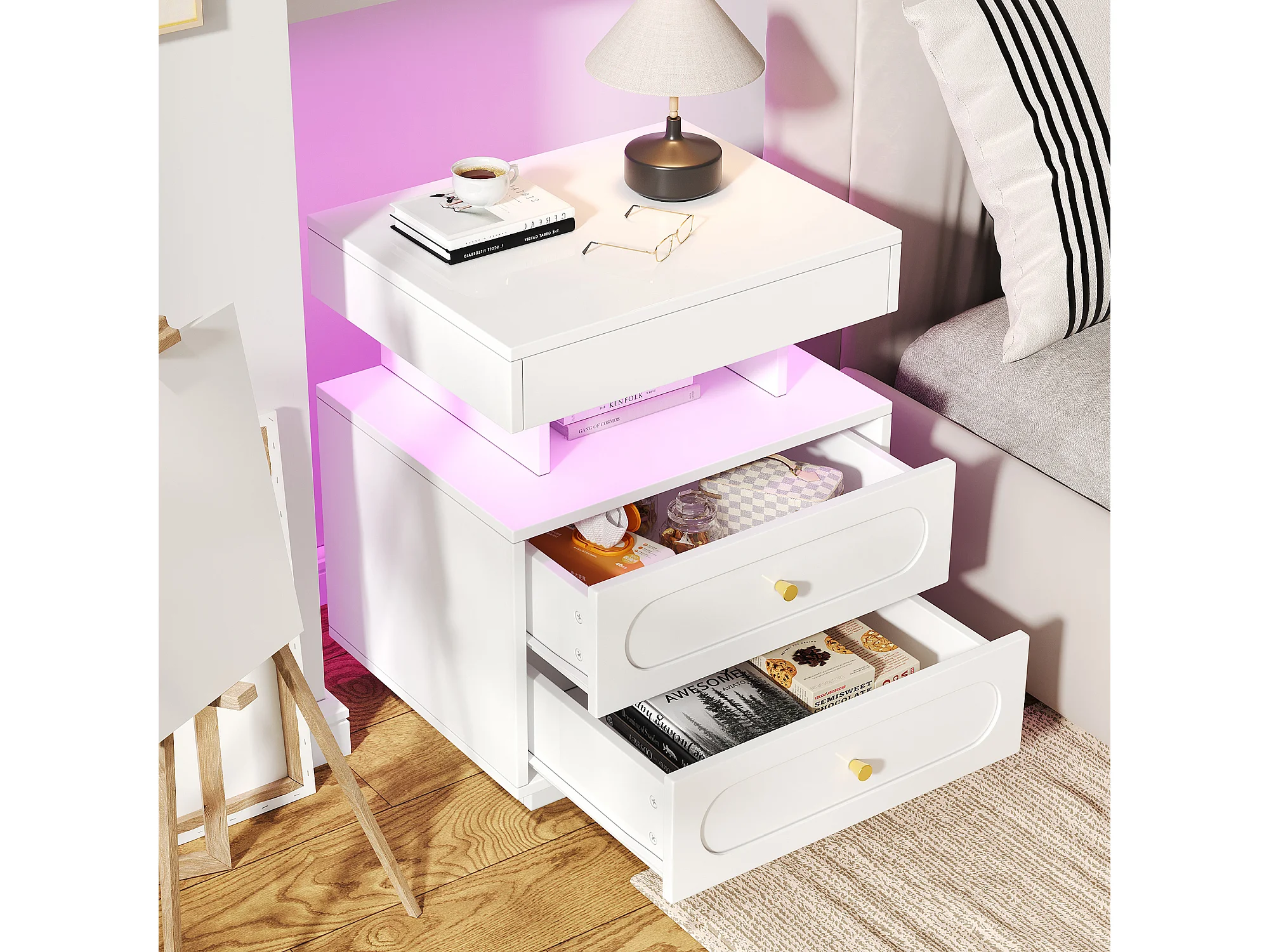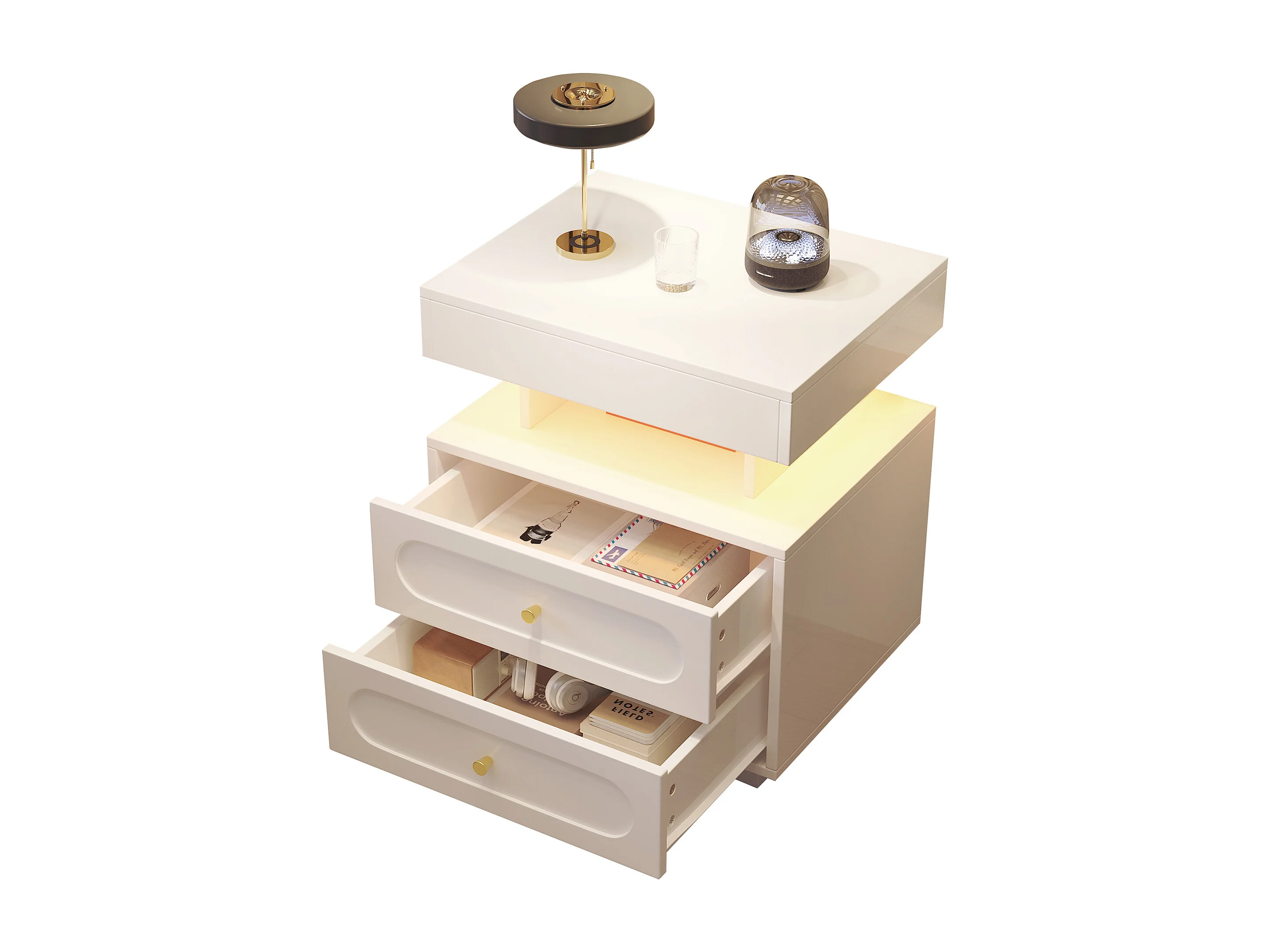 Wit nachtkastje - Nachtkastje met 3 lade en plank - voor woonkamer en slaapkamer