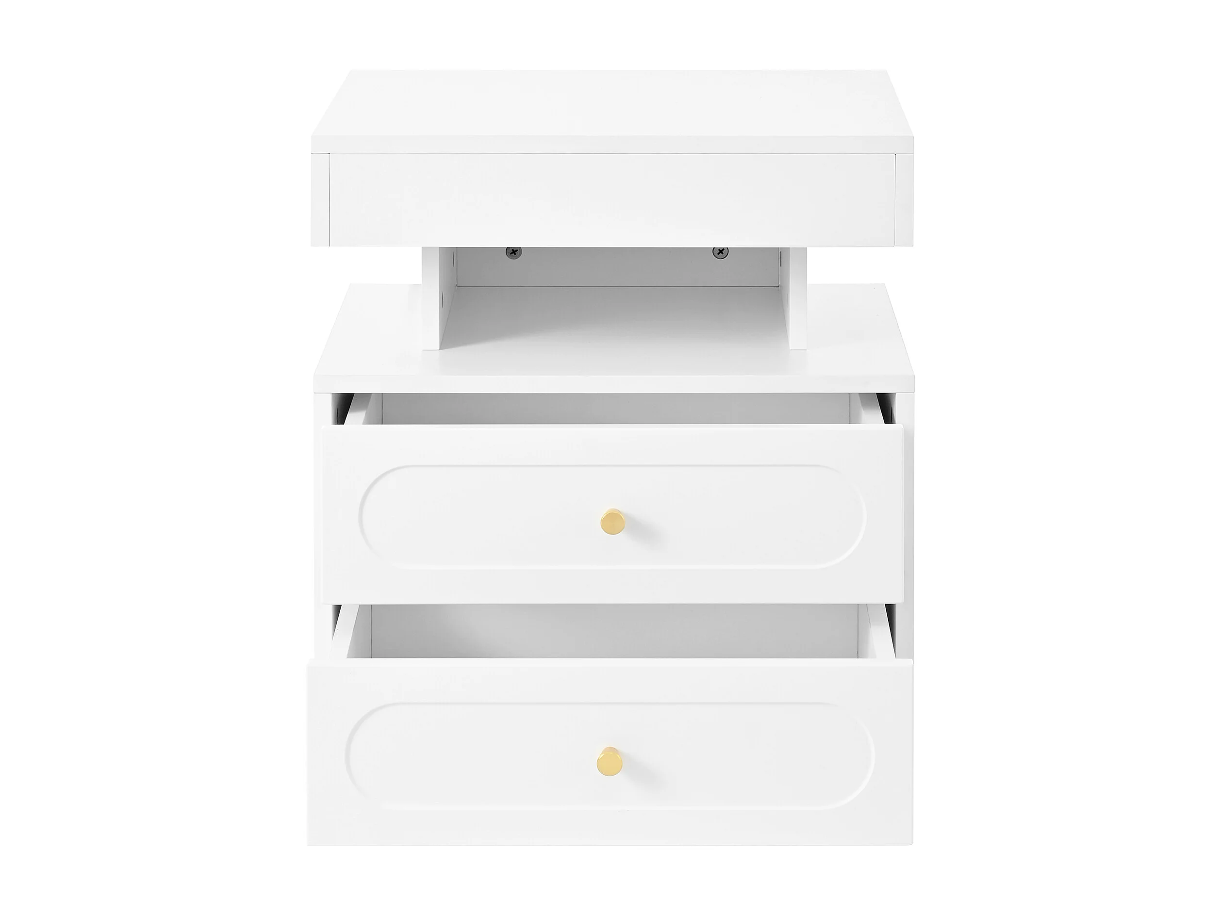 Nachtkastje AURORA – 2 lades + open vak – Alpenwit en gouden poten