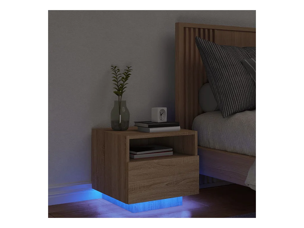 Nachtkastje met LED-verlichting bewerkt hout sonoma eikenkleur