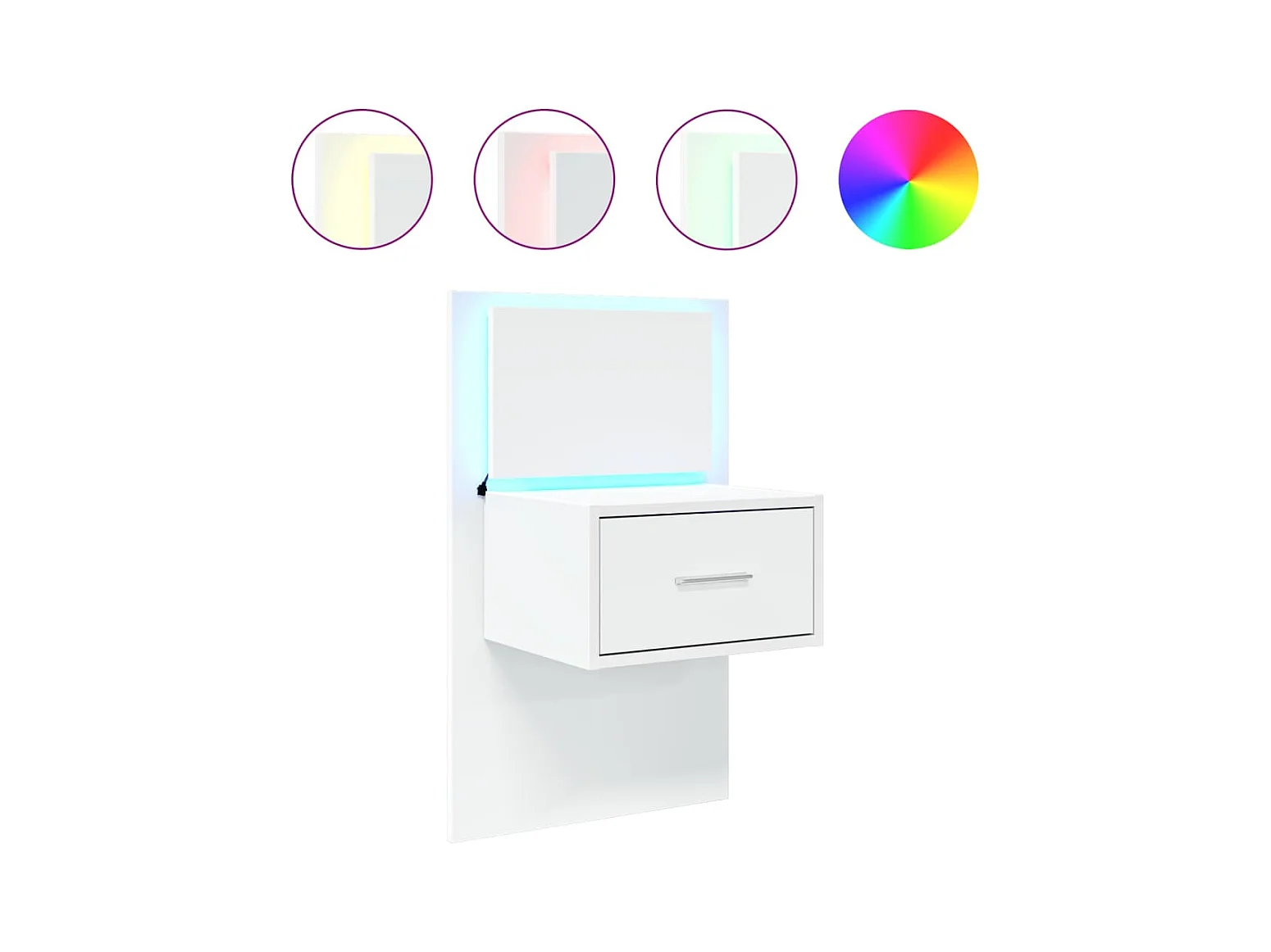 Nachtkastje met LED-verlichting wandgemonteerd wit