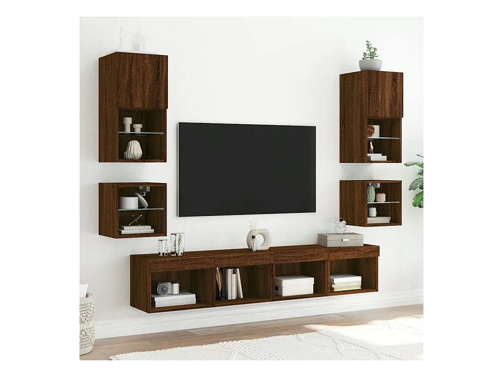 Nachtkastje met LED's wandgemonteerd bruin eikenkleur
