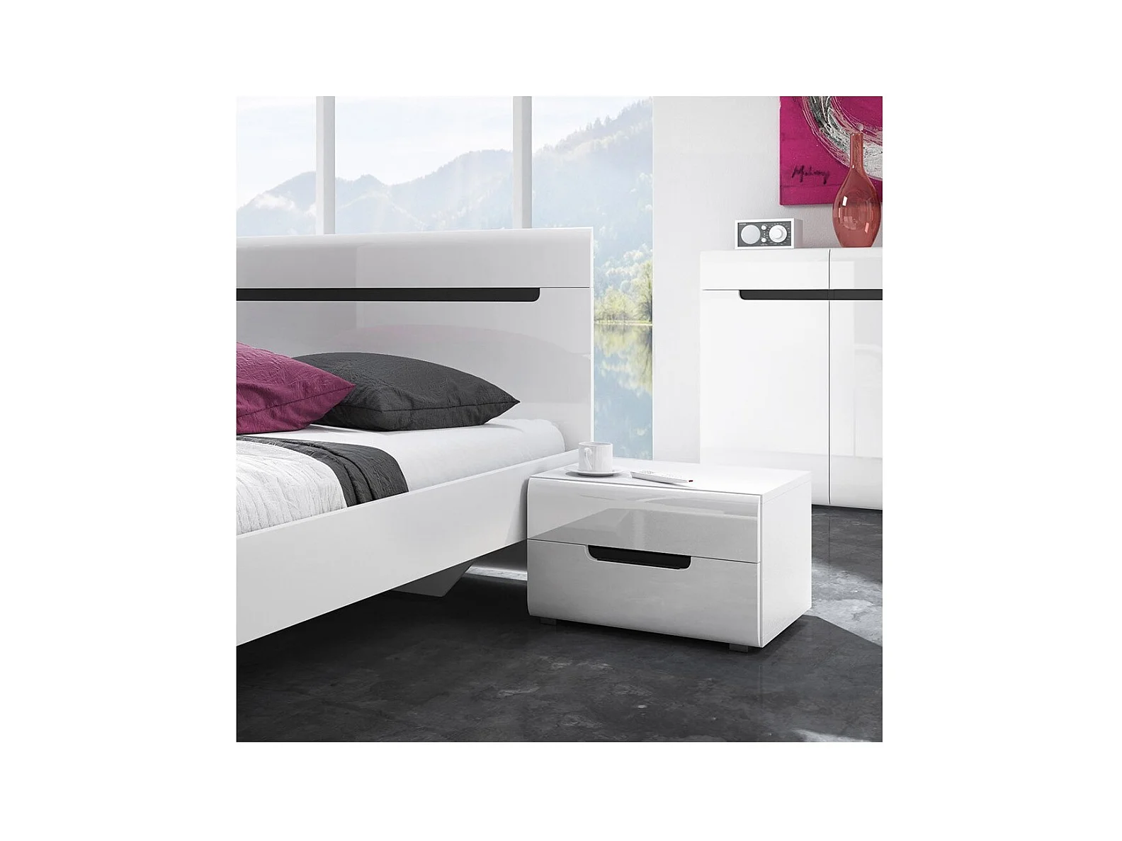 Nachtkastje met twee lades uit de LUCIA-collectie. Kleur: wit.