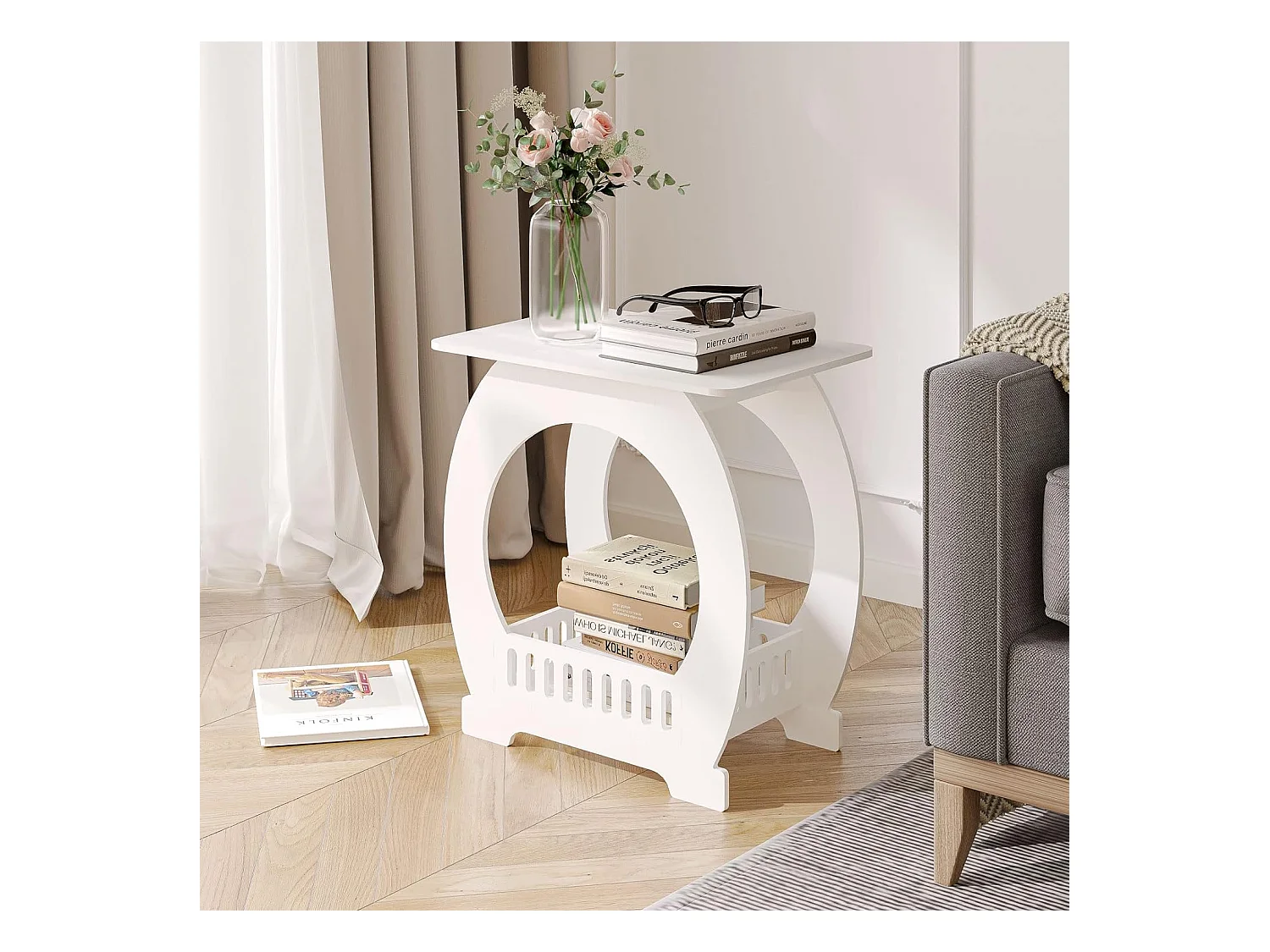 Nachtkastje, Nachtkastje met Mand, Salontafel voor kleine ruimtes, Eindbank, Woonkamertafel - 44x30x46cm - Wit