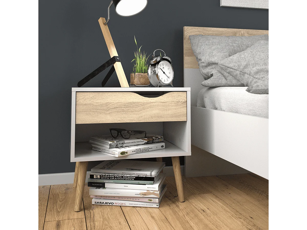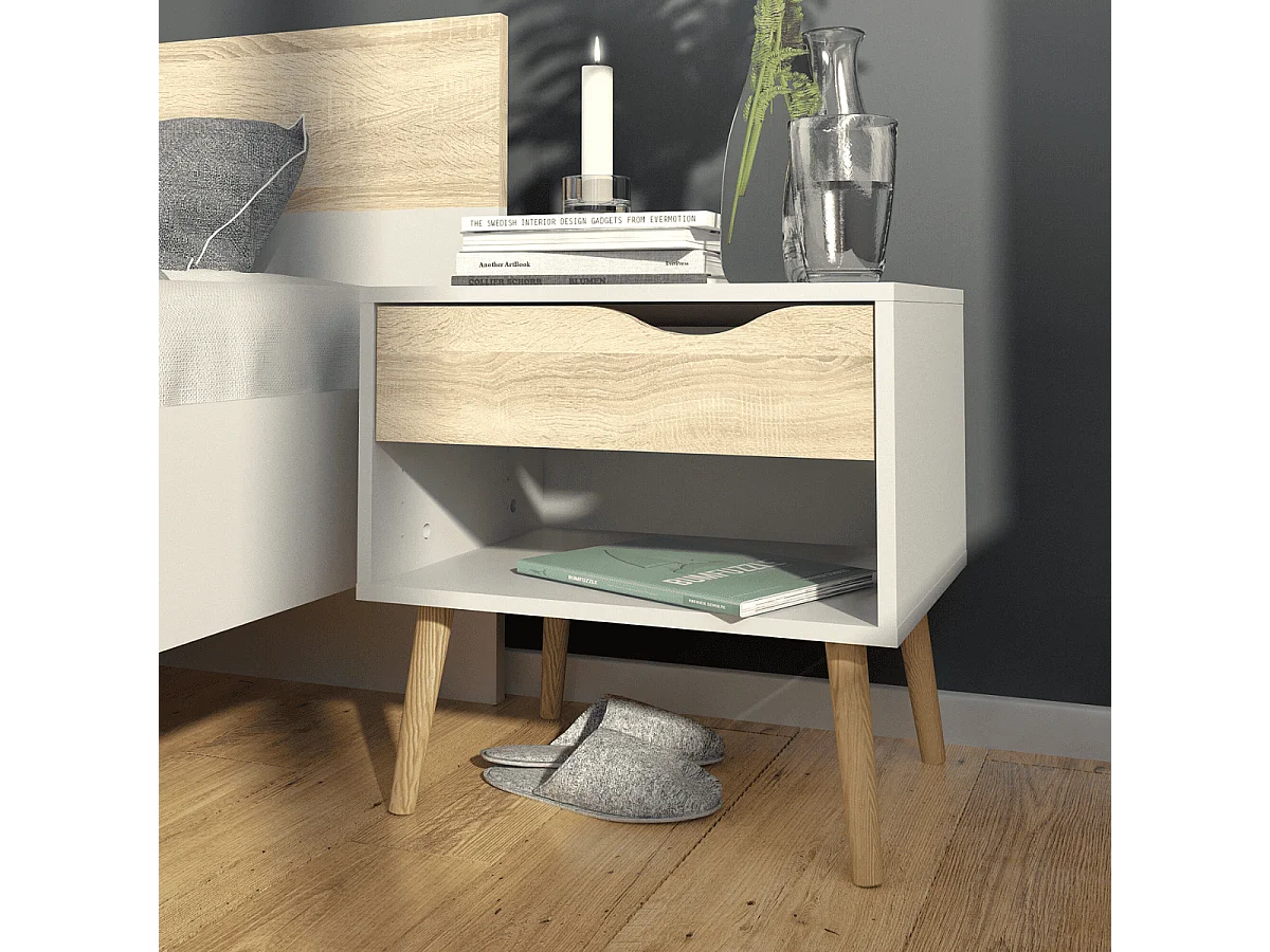 Nachtkastje Napoli met lade en plank wit/eiken.