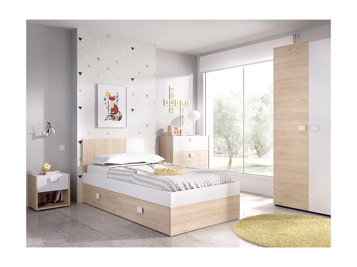 Nachtkastje SONIA - 1 lade en 1 nis - Eiken en wit