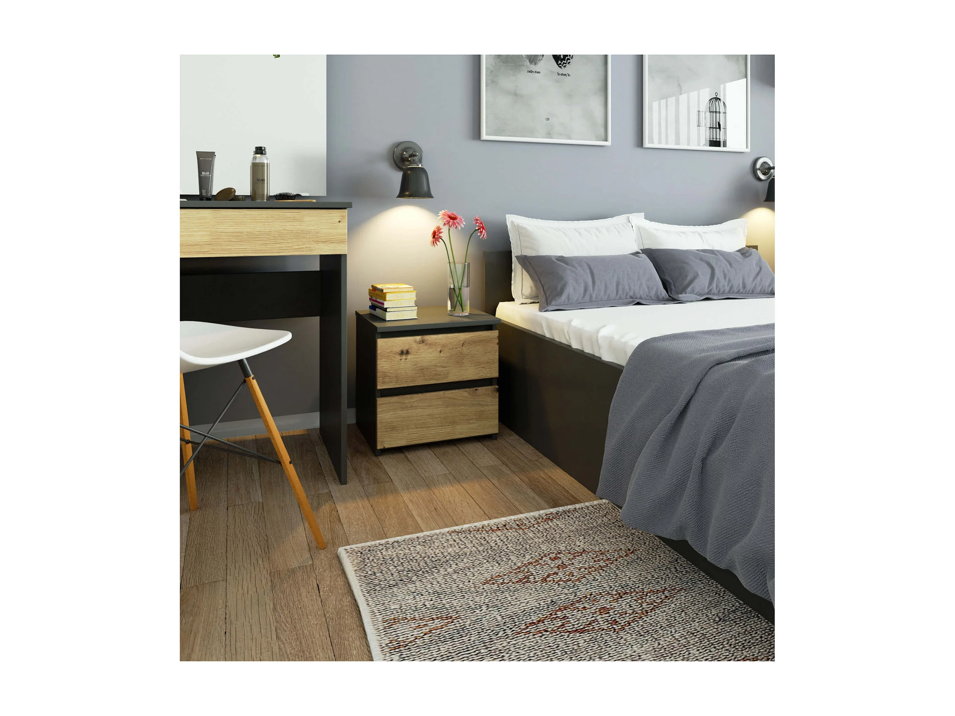 Nachtkastje CL2 met 2 Lades / AKORD Furniture Factory / Grafietgrijs - Eiken / 40 x 40 x 35 cm