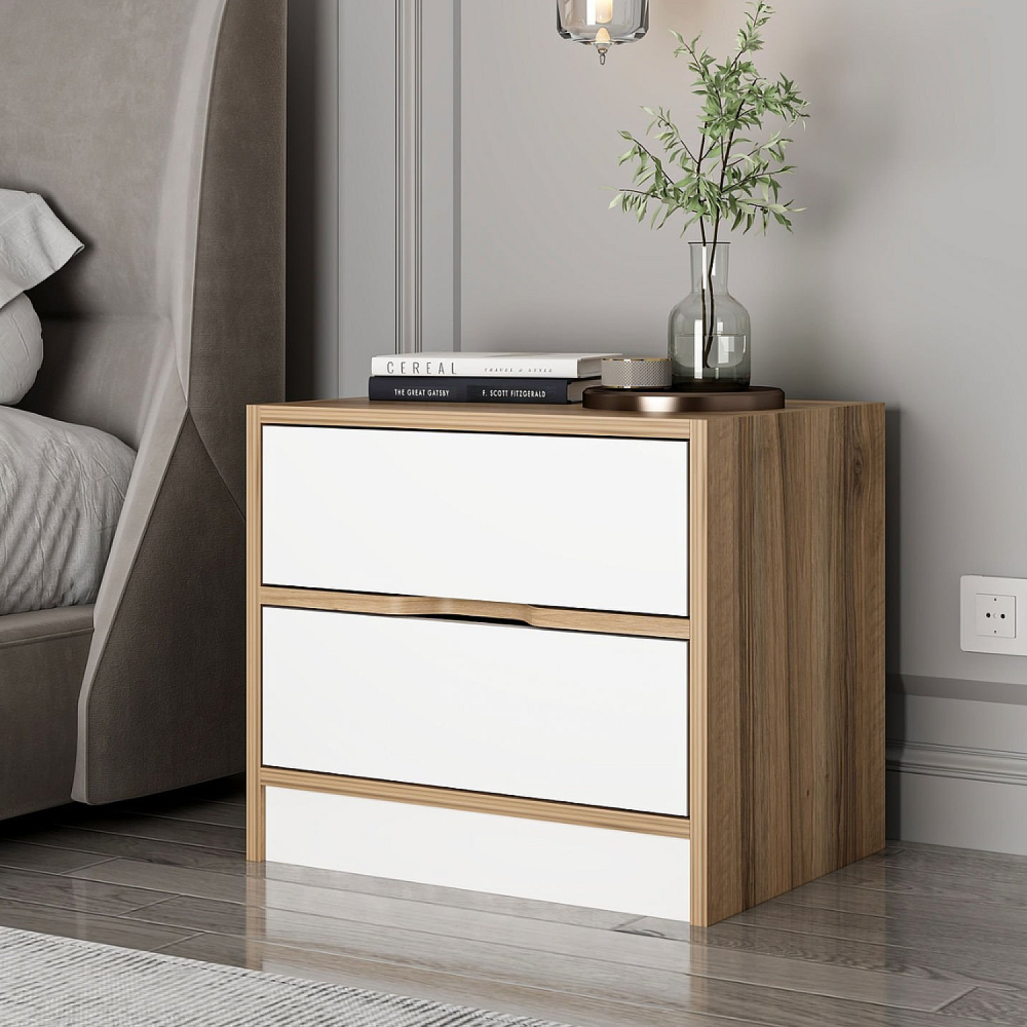 Nachtkastje van hout en wit met 2 lades MOLDE - Scandinavische en functionele stijl