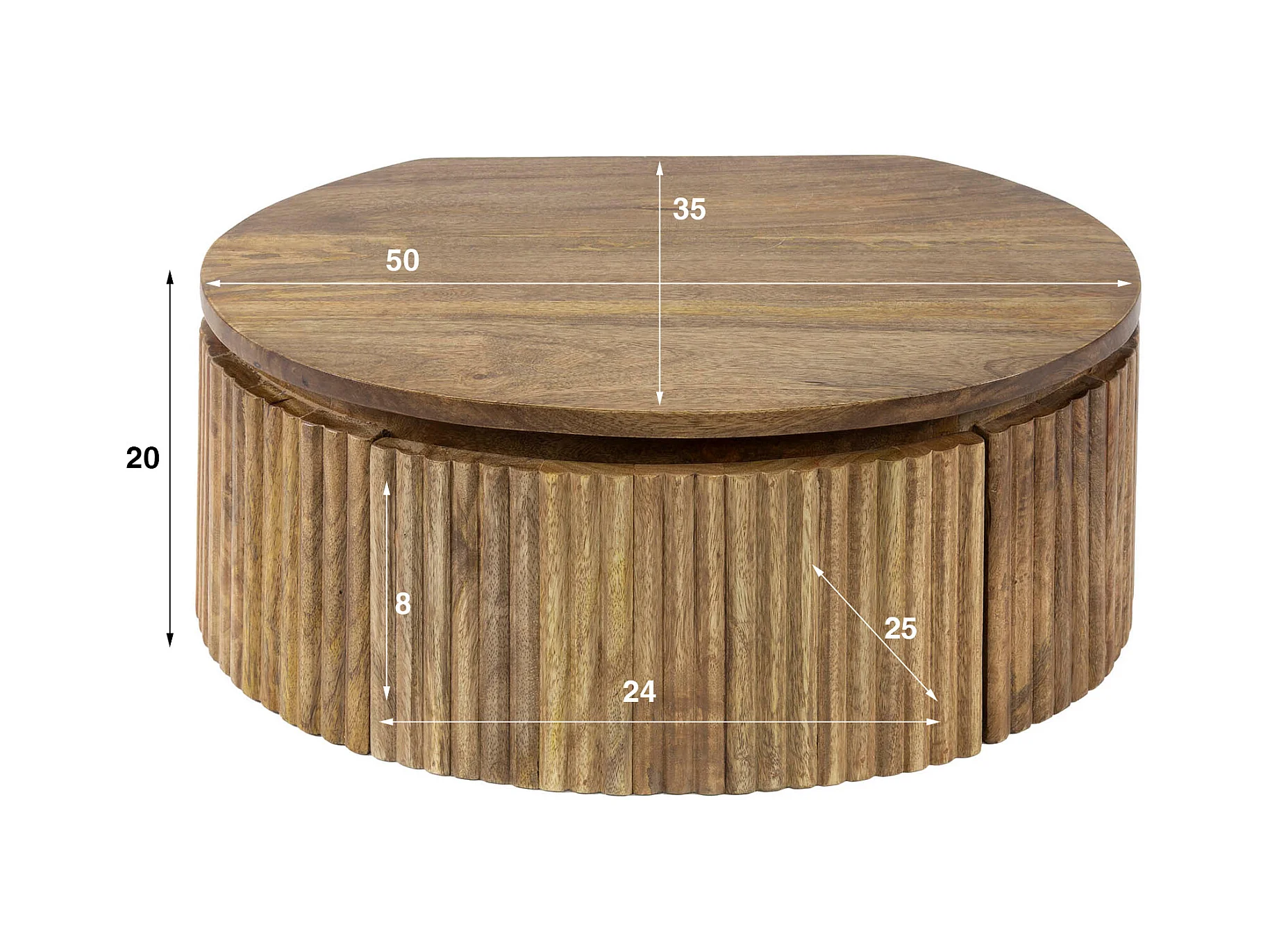 Nachtkastje Wave Rond - Massief Mango Zandkleur