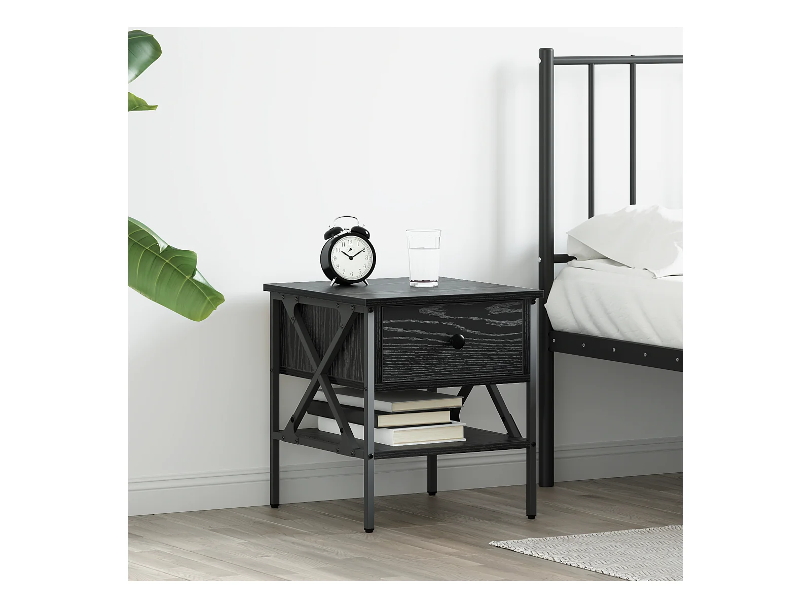 Nachtkastje Zwarte eik 40x42x45 cm Bewerkt hout