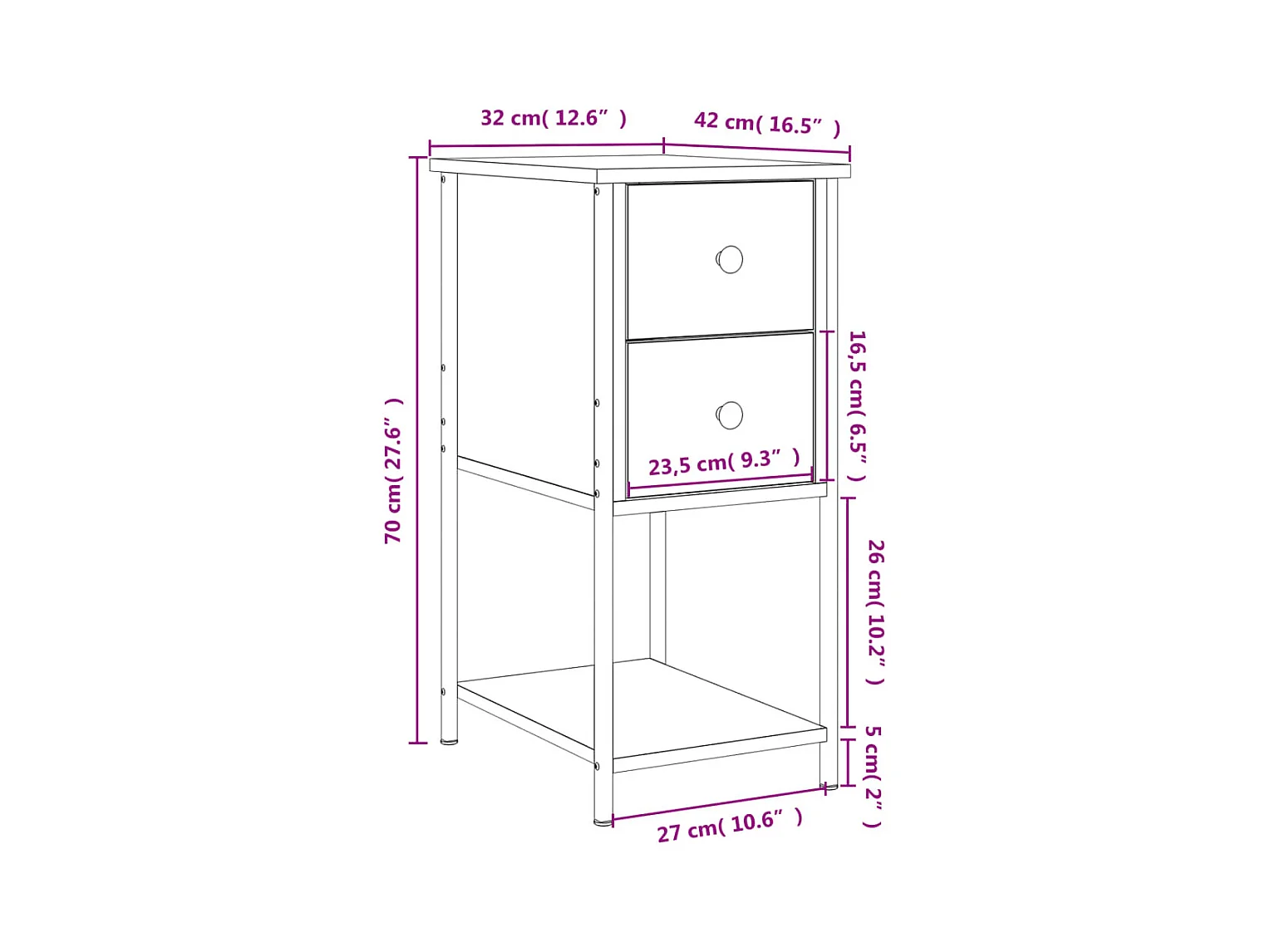 Nachtkastjes 2 st 32x42x70 cm bewerkt hout gerookt eikenkleurig